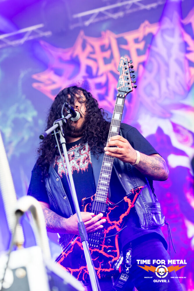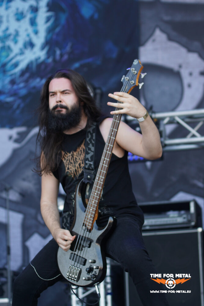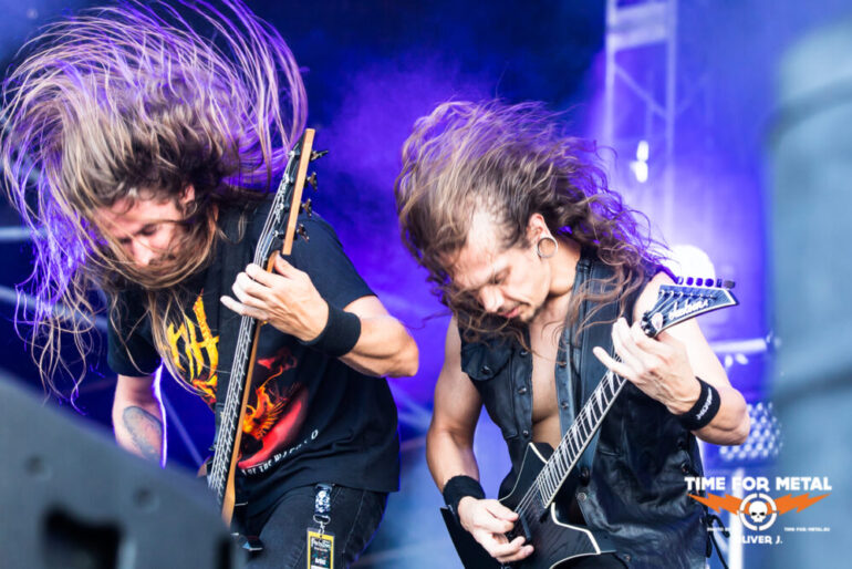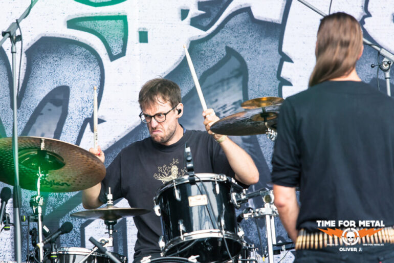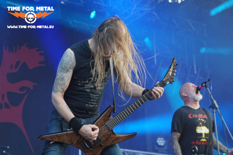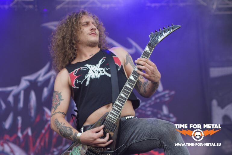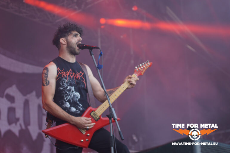 René W.: Die Belgier Schizophrenia durchmengen Thrash-Metal-Hooks mit Death-Metal-Riffs und bekommen damit ein durchaus beachtliches Brett auf die Stage! Die letzte EP Chants Of The Abyss konnte mich im Sommer 2024 auf dem Burning Q auf Anhieb überzeugen. Auch auf der deutlich größeren Bühne machen sie eine gute Figur. Sea Of Sorrow agiert gnadenlos. Romeo Promos Promopoulos und Marty Van Kerckhoven schneiden tiefe Kerben in die aufgeheizte Luft. Angeführt wird das Quartett vom Bassisten und Sänger Ricky Mandozzi. Stark aufgeheizt glühen die Männer tiefe Kornkreise in die Balken. Zwei lange Tage sind beim Publikum spürbar. Regen wäre zwar deutlich schlimmer, aber die angestiegenen Temperaturen lassen bei vielen die Vernunft walten und kühles Bier im Schatten hat auch seinen Reiz.