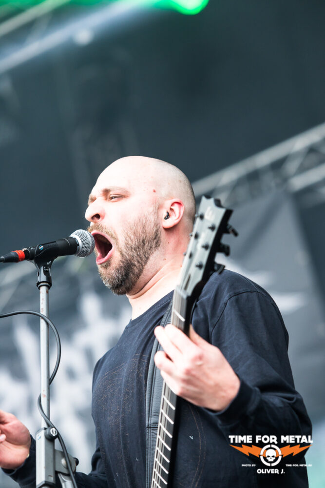 Markus P.: Slam Death Metal ist zwar überhaupt nicht meins, aber die tolle Balance zwischen Härte und Zugänglichkeit von Analepsy ist doch recht faszinierend, und daher bleibe ich auf dem Infield, um mir von den Portugiesen gehörig den Scheitel glätten zu lassen. Im Plattenregal habe ich nur die letzte Platte, die auf den entspannten Namen Quiescence hört. Die hatte ich mir ursprünglich wegen des genialen Lordigan-Covers geholt, einen Künstler, der auch die eine oder andere Magic-Karte designt hat. Zu sehen ist ein interstellarer Mahlstrom, der die Musik der Lissabonner insgesamt sehr gut charakterisiert. Eine Urgewalt, alles langsam zermalmend und dabei alles verschlingend, ohne Rücksicht auf Verluste. Und natürlich heute auch ohne Rücksicht auf apokalyptische Außentemperaturen. Eine ganze Schar Fans sieht das ebenfalls so und slammt sich zu den treibenden Klängen den Schweiß aus allen Poren. Ich lausche schlicht abseits aus einem schattigen Eckchen heraus. Schön brutal!