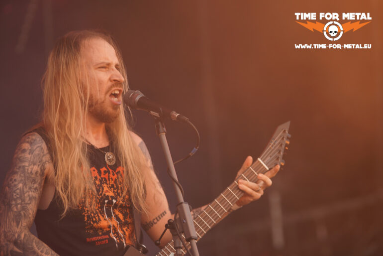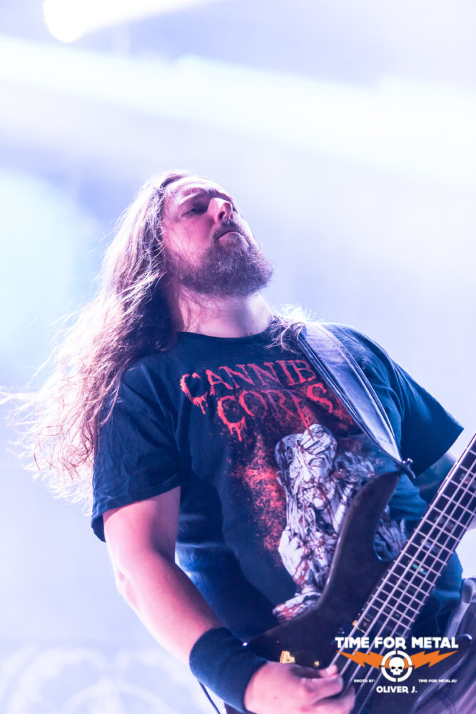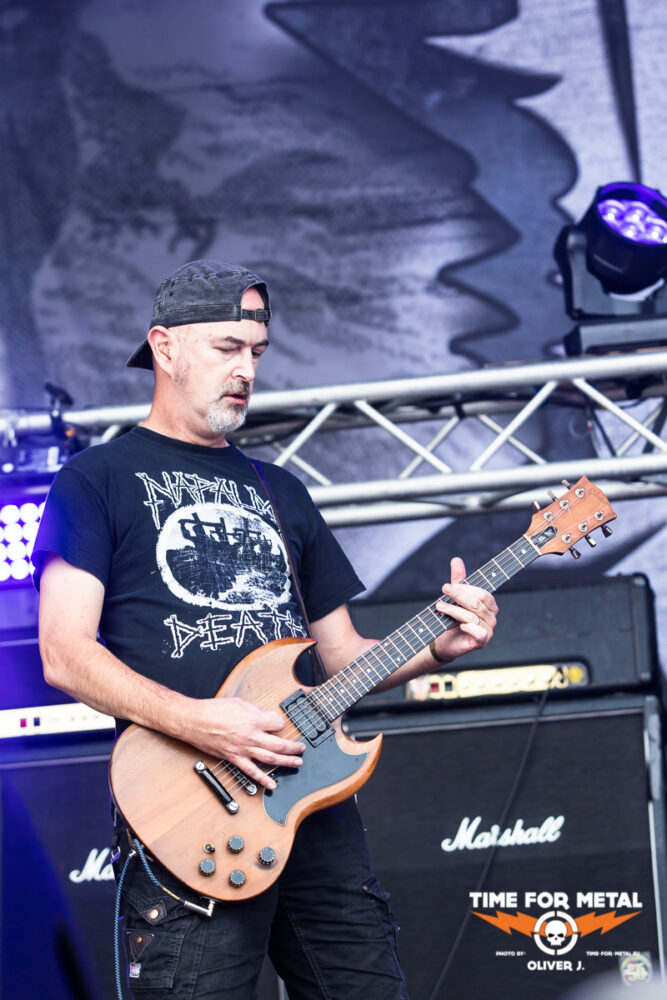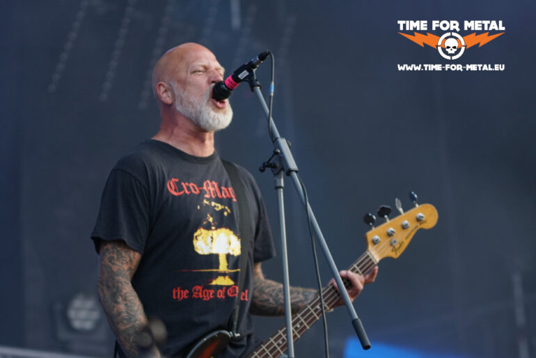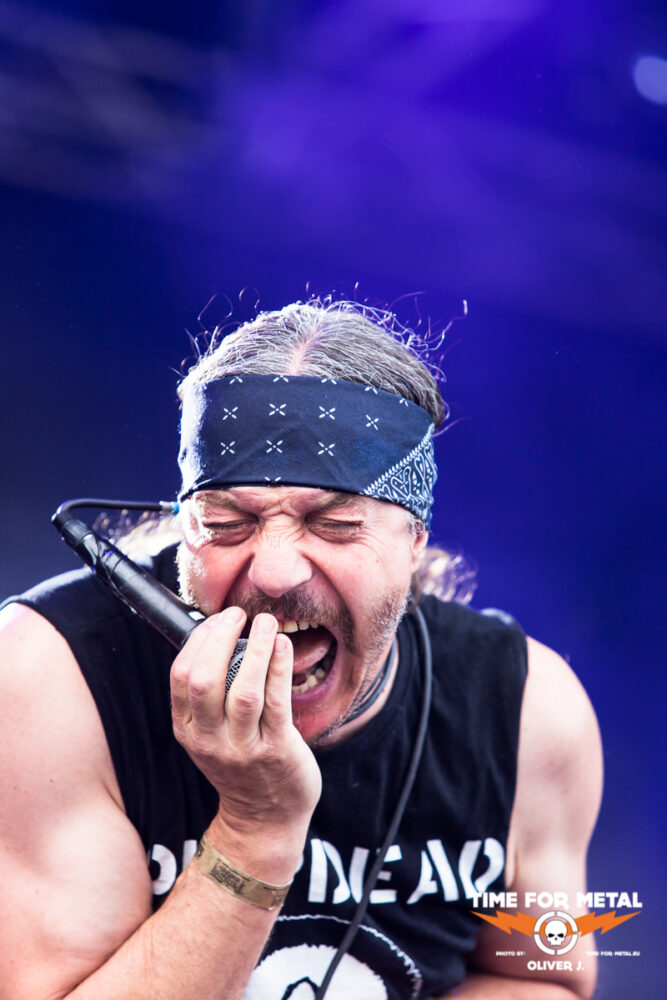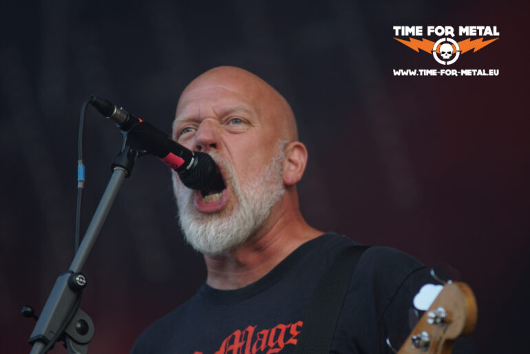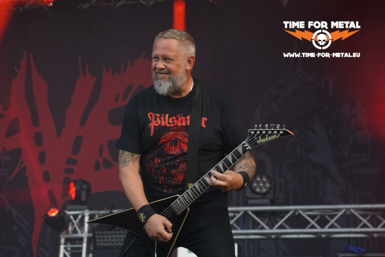 René W.: Das Ende naht. Das Grab ist ausgehoben und die Himmelspforte, so Gott will, ruft. Für die Musiker von Grave wird diese wohl noch mit zusätzlichen Brettern verrammelt. Ola Lindgren würde dort eh eine komische Figur abgeben. Zumal wir ihn noch brauchen, um heute ein spezielles Set aus Into The Grave, You’ll Never See und Soulless Material zu zelebrieren. Into The Grave und Day Of Mourning sprengen sofort alle Fesseln. Turning Black bricht über das Publikum herein und einzelne Crowdsurfer werfen sich in die Arme ihrer Träger. Das alte Material, bekommt das nötige gallige Klangbild. Old Fucking School können Tobias Christianson und Mika Lagrén. Seit zehn Jahren, oder besser gesagt, nach Out Of Respect For The Dead lässt Ola Lindgren auf neues Material warten. Das benötigen Grave ohnehin nicht. Die Tracklist wird ihnen wortwörtlich aus den Händen gefressen. Warum noch neues Liedgut produzieren? For Your God reißt religiöse Narben auf. Soulless lässt der verdorbenen Seele freien Lauf und …And Here I Die…Satisfied drückt den dreckigen Finger in die eiternde wie pulsierende Wunde. Grave liefern standesgemäß ab und hinterlassen zufriedene Gesichter.