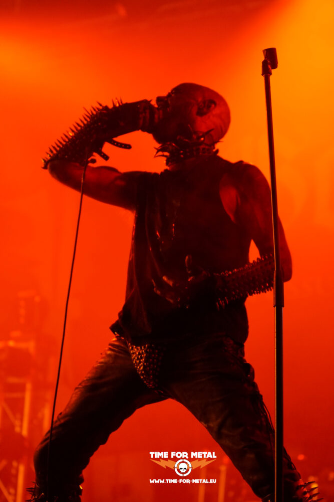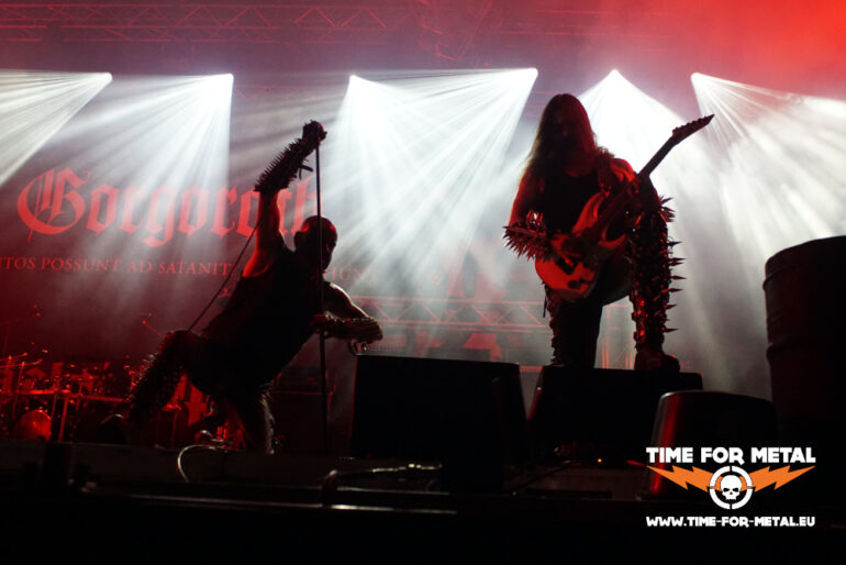 Markus P.: Ein letztes Mal wird’s dieses Jahr tiefschwarz auf dem Flugplatz Obermehler-Schlotheim. Zwar ist es auch hier für mich schon eine Ewigkeit her, dass ich Gorgoroth live erlebt hab – da hatte Ghaal das Mikro noch in Händen – umso gespannter bin ich jetzt auf das, was da gleich kommt. An der Front beschwört aktuell der extrem ambivalente und ziemlich kaputte Ørhan „Hoest“ Stedjeberg, den die meisten als Frontschreihals von Taake kennen dürften, alle Höllen herauf. Im Gegenzug zu den Norwegern während des ersten Jahrzehnts der Zweitausender Jahre würzt die aktuelle Besetzung ihr Set vermehrt mit melodiebehafteten Parts, wobei Melodie im Norsk Black Metal ja fast ein bisschen zu drüber klingt; wir reden hier jeweils von Titeln mit kurzen, netteren Akkordfolgen in der Gesamtkomposition. Für mich ist dann aber speziell die Performance von Revelation Of Doom von der dritten Platte am Schluss des Sets richtig geil: Von Haus aus schon galoppierend, interpretiert die Band den Titel hier in einem feinen Black-Speed-Stil. Dass Hoest ein ziemlicher Hustensaftschmuggler ist, scheint er dann am Schluss auch mal wieder unter Beweis stellen zu wollen, da er das Mikro mehrfach gegen den Schädel wemmst, während er noch etwas in Richtung Auditorium keift. Vielleicht hat man potenzielle Schäden am Gerät einfach mal von der Gage abgezogen, wer weiß? Nee, im Ernst, war trotzdem insgesamt eine runde Sache, vielleicht bekommt die Kapelle auch im Studio ihr Gesäß mal wieder aus dem Sessel.