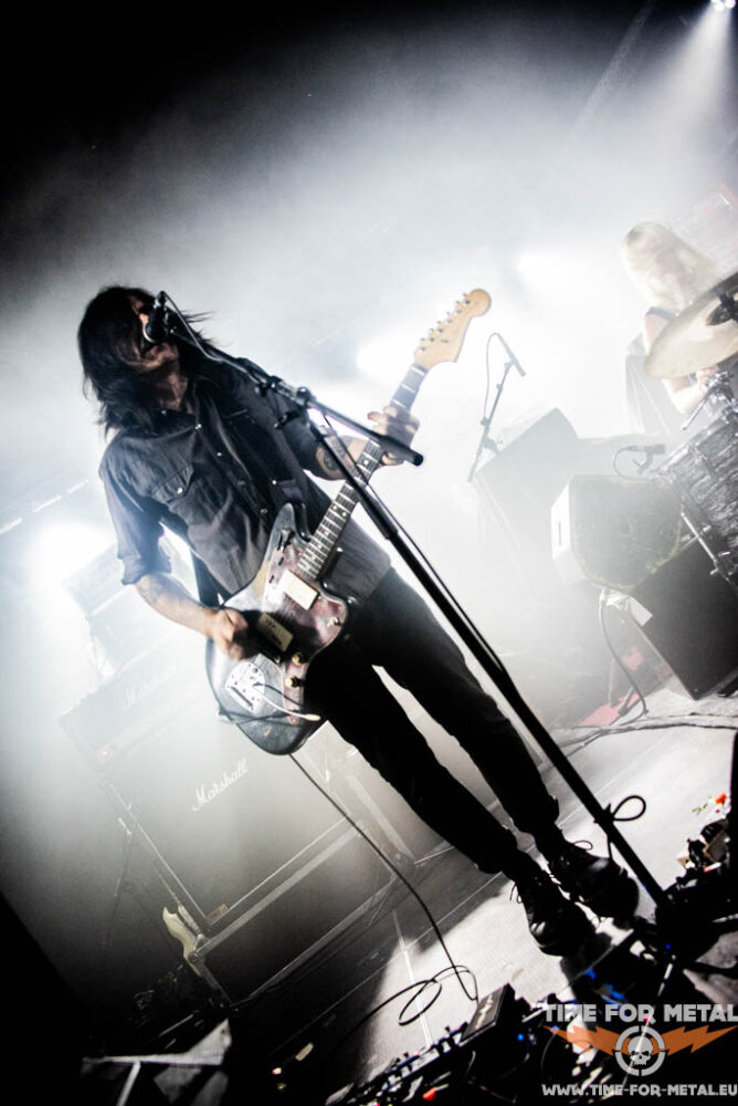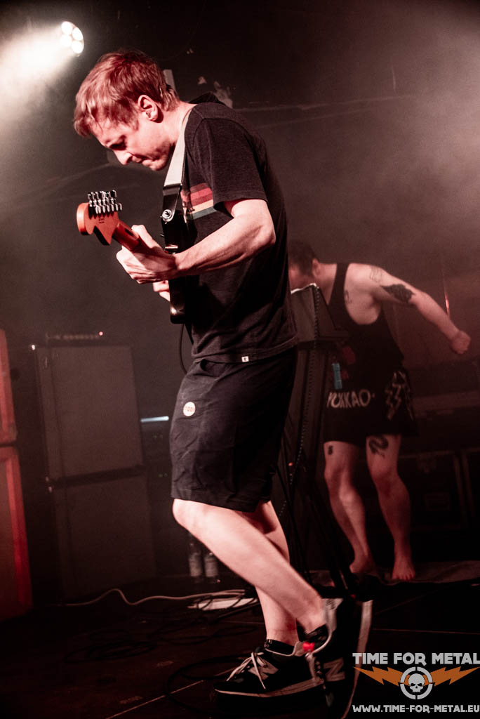 Doch vor den Mainact haben die Götter den Opener gesetzt. In diesem Fall: Grinding Eyes. Als das Trio aus Australien die Bühne betritt, ist der Club noch relativ leer. Ein Gast fällt früh mit ekstatischen Tanzeinlagen auf – ob sich die Euphorie allein auf die Musik zurückführen lässt, oder doch eher chemisch induziert ist, sei mal dahingestellt. Die restlichen Anwesenden quittieren das Dargebotene mit höflichem Applaus, halten sich ansonsten aber noch zurück.