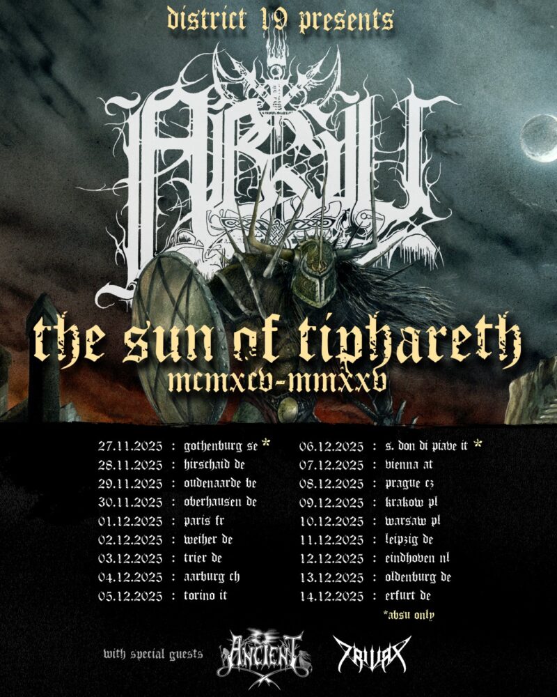 Drei Jahrzehnte nach dem Erscheinen ihres ikonischen Albums The Sun Of Tiphareth erhebt sich die mythologisch-okkulte Metal-Legende Absu erneut aus den Tiefen der Zeit! Gemeinsam mit Agonia Records feiert die Band ihr 30-jähriges Meisterwerk mit einer Reihe exklusiver Liveshows – ein rituelles Erlebnis, das Chaos, Mythos und Magie in unvergleichlicher Intensität vereint. Angeführt von Proscriptor McGovern und verstärkt durch die griechischen Extrem-Metal-Veteranen Zemial verschmilzt hier alte Macht mit neuer Energie. Zwei Kultformationen, die seit den frühen 1990er-Jahren spirituell und musikalisch verbunden sind, bündeln ihre Kräfte, um The Sun Of Tiphareth in einem einzigartigen Bühnenritual wieder aufleben zu lassen – wild, erhaben und voller okkulter Symbolik. Ein Abend, der nicht nur Nostalgie, sondern pure transzendente Energie verspricht. Absu sind zurück – und mächtiger denn je!