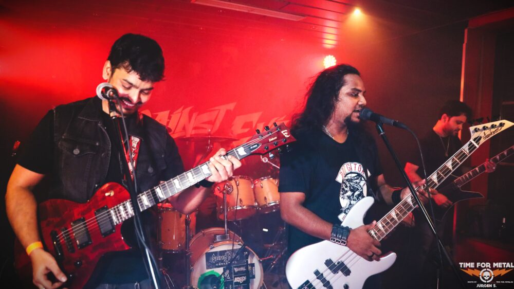 Es waren einmal vier Musiker in Indien. Noble John (Schlagzeug), Shasank Venkat (Gitarre), Sravan Chakravarthi (Gitarre und Gesang) und Siri Sri (Bass und Gesang) fanden sich zusammen, um im Land der heiligen Kühe zusammen Heavy Metal zu spielen. Da sie in einem frommen Land wohnten, nannten sie ihre Band Against Evil … wie heißt es doch zum Schluss so schön im Märchen: Und wenn sie nicht gestorben sind, dann spielen sie im Florinsmarkt (oder so ähnlich). Hier im Florinsmarkt haben die sehr sympathischen Inder ja bereits bei ihrer ersten Tour 2019 gespielt. Damals durfte ich, wie heute auch, dabei sein. Also das Märchen geht in eine weitere Runde!!!
