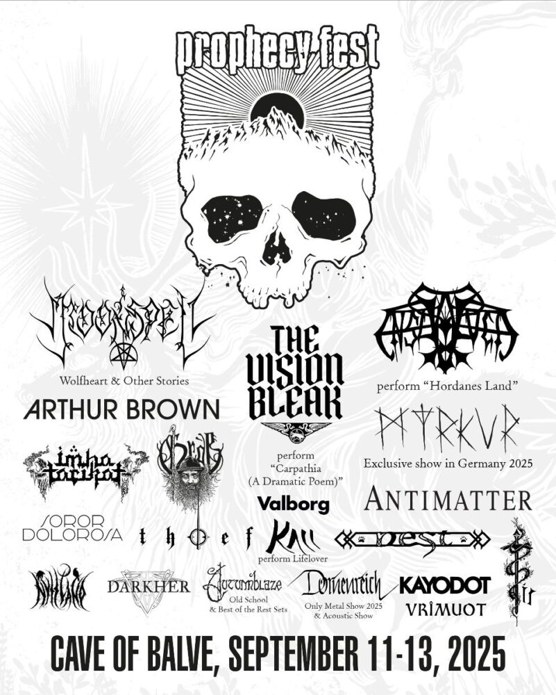 Zusätzlich zu diesem starken Paket haben die britischen Rocker Antimatter zugestimmt, eine extra Portion erdrückender Traurigkeit in die Höhle zu bringen, während Thief ihre elektronische Magie präsentieren und Valborg zurückkehren, um die Wände erneut brutal zum Beben zu bringen. Das Sahnehäubchen werden Dornenreich liefern, die ein zweites akustisches Set spielen. Diese Bands vervollständigen das Line-Up des Prophecy Fest 2025.