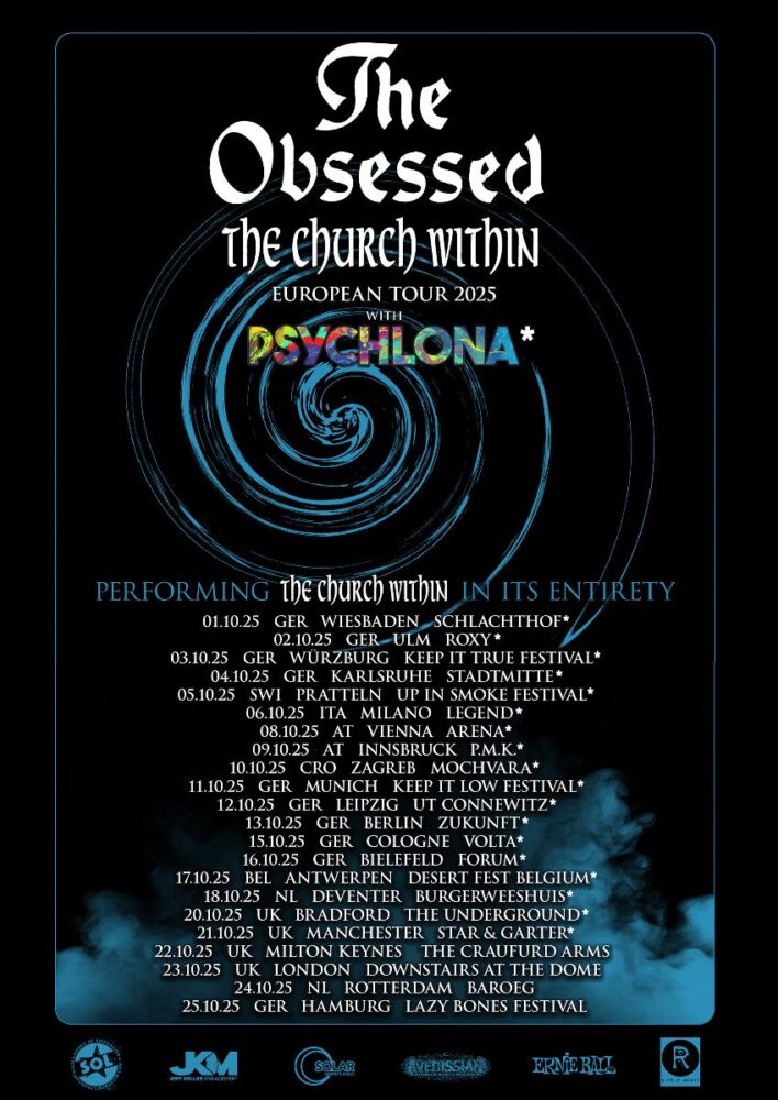 Psychlona äußertn sich dazu: „We’re stoked to be heading out to Europe for three weeks with The Obsessed,“ schreibt Gitarrist und Sänger Phil Hey. „These guys are rightfully legends on the scene and they will be performing their classic The Church Within album in full every night. Wrap that in with our latest full-length Warped Vision that was voted ‚Best Album of 2024‘ at Doom Charts and will feature heavily in our set, and you’ve got a killer night out right there. See you on the road!“