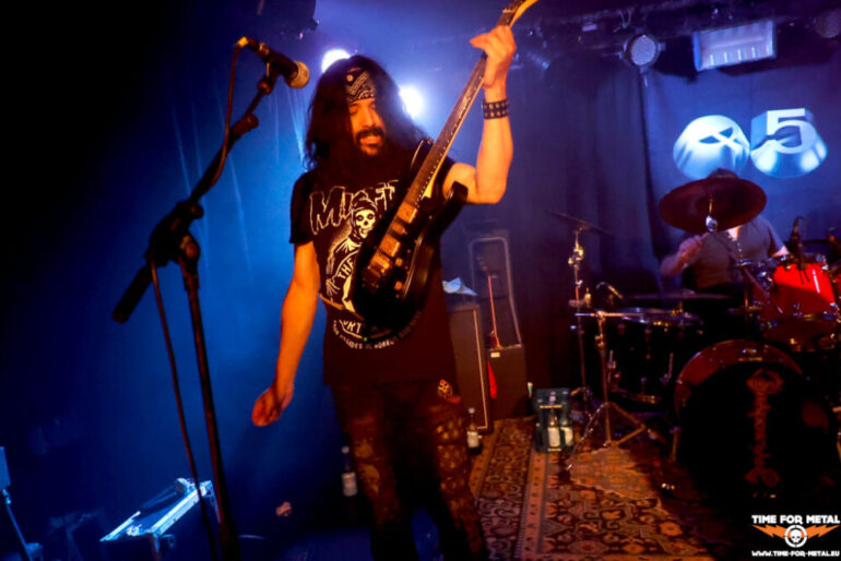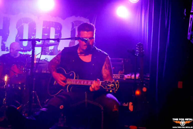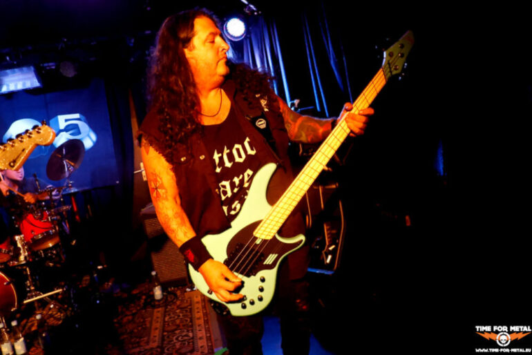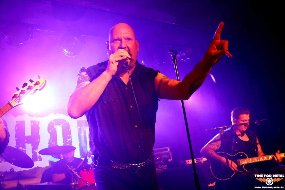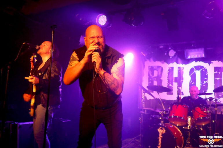 Einen Opener gibt es auch. Um 20 Uhr stehen Rhodo aus Hamburg auf der Bühne. Hinter Rhodo verbirgt sich der Sänger Sören Meyer, der viele Jahre als Bassist von Warpath agierte. Mit Rhodo frönt Meyer jedoch dem Hard Rock und Thrash Metal scheint Vergangenheit zu sein. Musikalisch passen die beiden Bands nicht wirklich. Dazu ist das Quartett ersatzgeschwächt. An den Drums agiert eine Leihgabe von Shadowbane, dazu ist die Gitarre in seinem Bewegungsradius eingeschränkt wegen einer Knie-OP. Aber ein paar Leute ziehen die Lokalmatadoren und sorgen dafür, dass es bei Q5 nicht ganz traurig vor der Bühne aussieht. Aber eins haben die beiden Combos gemeinsam. Der Schlusspunkt ist auch bei Rhodo ein Cover mit Bad Moon Rising von Creedence Clearwater Revival.
