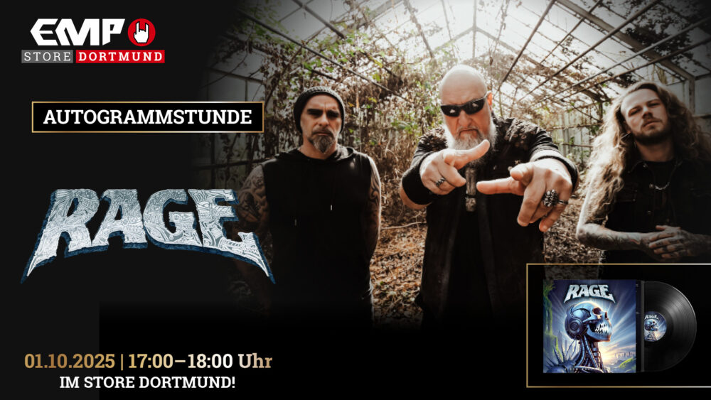 Doch es kommt noch besser: Papa Peavy und seine beiden Mitstreiter Jean Bormann (Gitarre) und Vassilios “Lucky” Maniatopoulos (Drums) wollen wissen, wie euch die Scheibe gefällt und schauen deshalb in der Woche nach dem Release im EMP-Store Dortmund vorbei, um euch zu treffen.