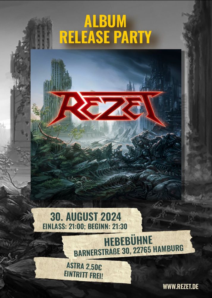 Rezet neues, selbstbetiteltes Album erblickt am 30. August das Licht der Welt… das muss gefeiert werden – mit euch! Es wird ein fettes Rahmenprogramm inkl. DJ, Drinks, jeder Menge Metal und natürlich der Vorstellung ihrer neuen Platte geben.