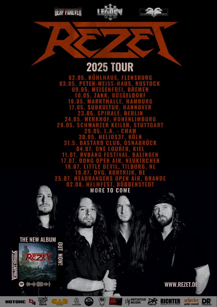 Mit ihrem selbst betitelten, sechsten Studioalbum spielen Rezet ab Mai insgesamt 17 Shows in Deutschland – darunter Gigs in Hamburg, Hannover und Berlin sowie auf Festivals, wie dem Headbangers Open Air.