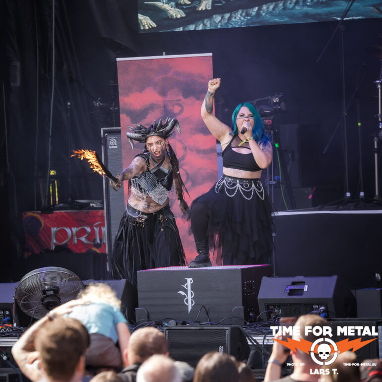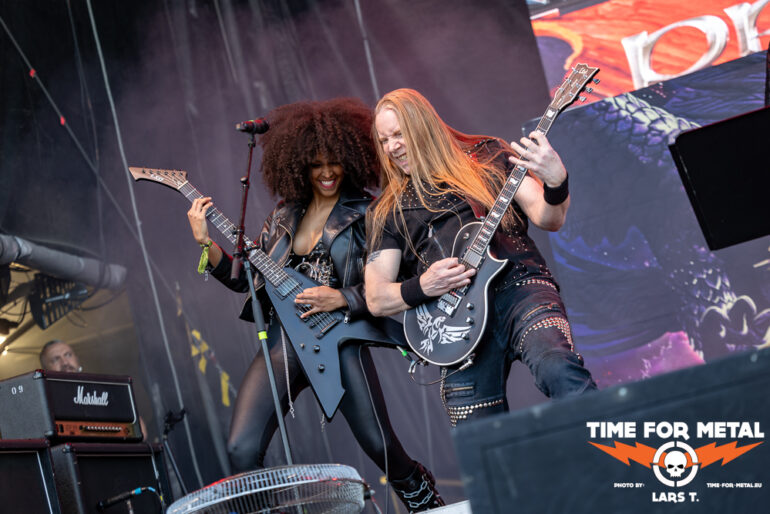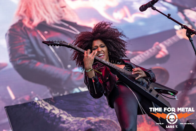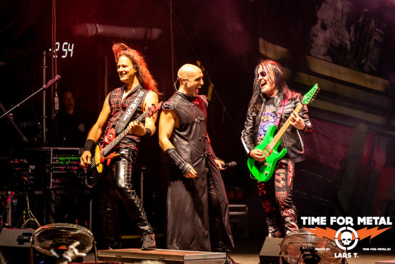 Es gibt aber direkt wieder Metal Heavy im Anschluss mit dem schwäbischen Schwergewicht Primal Fear. Alles neu macht der Mai, zumindest steht eine neue Bandbesetzung von Primal Fear auf der Bühne, die nach dem Genuss der circa 60 Minuten noch einiges an Luft nach oben hat. Klar, einen erfahrenen Gitarristen wie Alex Beyrodt zu ersetzen, ist mehr als schwierig. Die neue Gitarristin Thalìa Bellazecca gibt ihr Bestes, aber an einen Beyrodt kommt die Dame heute nicht annährend heran. Dazu ist glücklicherweise Mat Sinner nach fünfjähriger Krankheit erstmals wieder auf der Bühne. Fit ist Sinner noch nicht, sodass hier bereits vor dem Gig klar war, dass Abstriche in Kauf genommen werden müssen. Der neue Mensch an den Drums ist ein alter Bekannter. Die ehemalige Rage-Rhythmusmaschine André Hilgers liefert und ist einer der Aktivposten auf der Bühne. Gleiches gilt für Magnus Karlsson an der zweiten Gitarre. Dreh- und Angelpunkt ist aber Ralf Schepers, der nach wie vor sein herausragendes Organ sprechen lässt und der Show seinen Stempel aufdrückt.