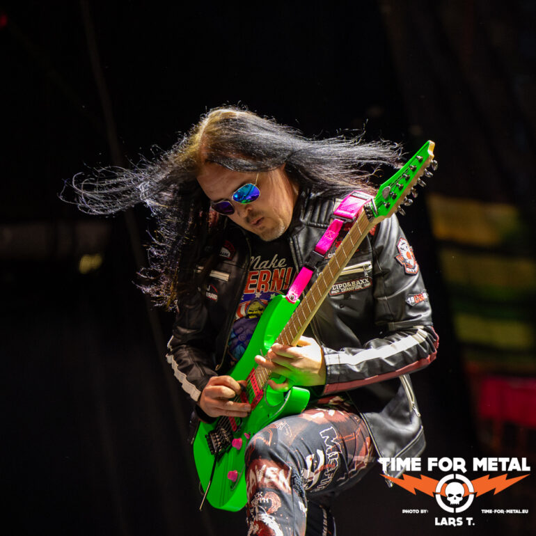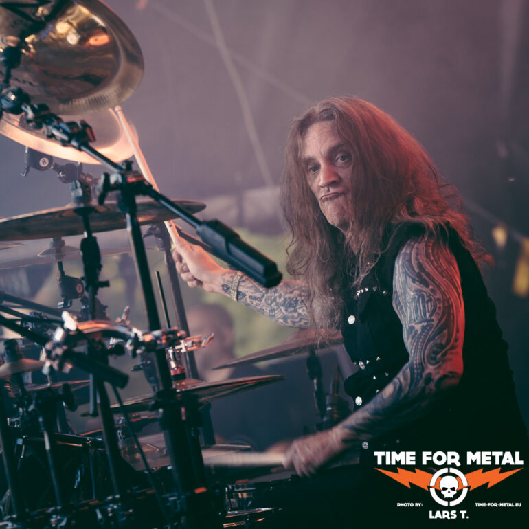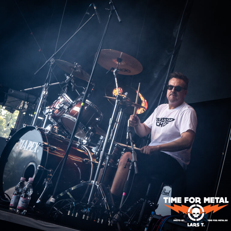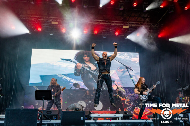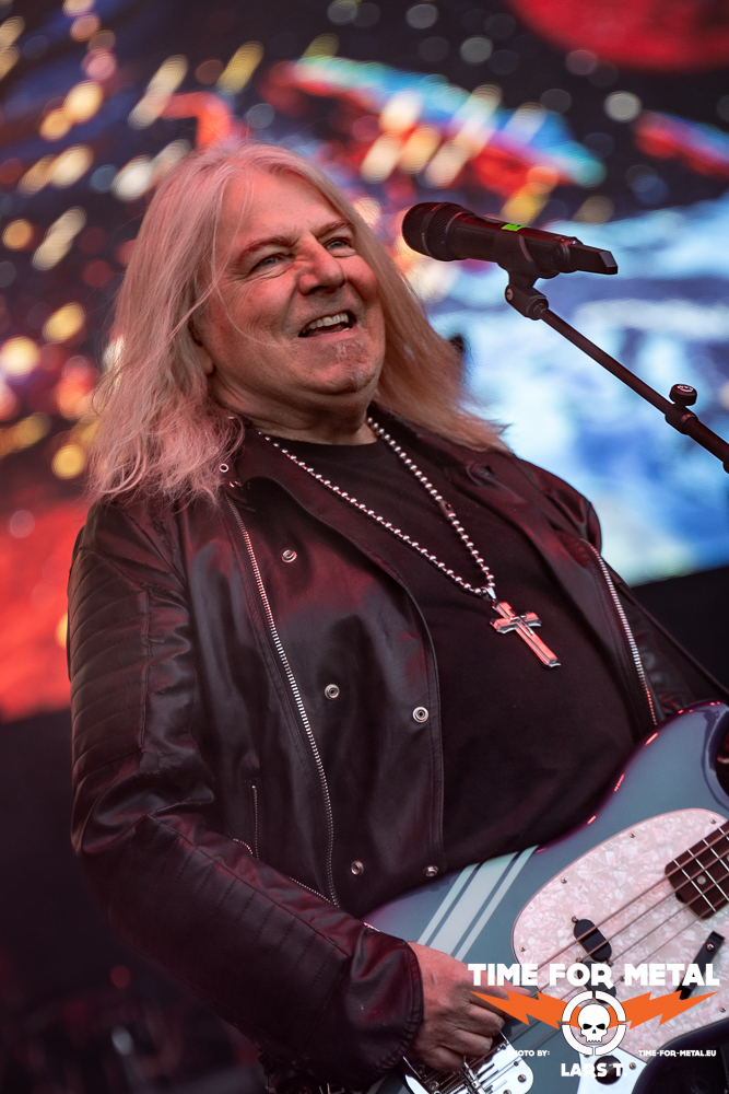 Wie bei fast allen Bands dauert es einen Track, bis der Sound passt. Festival halt, da wechselt der Mensch am Mischpult öfter. Mit Nuclear Fire und Angel In Black läuft Schepers warm und mit jeder weiteren Nummer in Richtung Hochform. Der Blick auf den Bassisten Sinner stimmt glücklich – dass er wieder auf der Bühne stehen kann – aber auch traurig, wie er auf der Bühne steht. Das wird in der aktuellen Verfassung nicht einfach. Bei den Übergängen fällt das Fehlen der Beyrodt-Gitarre mehr als deutlich auf. Es ist noch einiges zu tun im Hause Primal Fear, bis zum Release des neuen Albums, von dem es heute mit The Hunter eine erste Kostprobe gibt. Anfang September soll es auf Tour gehen, auf der dann hoffentlich Sachen wie Chainbreaker, Metal Is Forever oder Running In The Dust ebenfalls im Set zu finden sind und die gesamte Performance der Band sich weiter verbessert. So bleibt am Ende ein kritischer Blick auf die Bühne, mit einem lachenden und einem weinenden Auge. Die Truppe besteht aus Profis und ist erfahren genug, um aus der heutigen Show ihre Erkenntnisse zu ziehen und bis zum Frühherbst die ersichtlichen Mankos abzustellen. Ein Ralf Schepers ist bereits in Hochform.