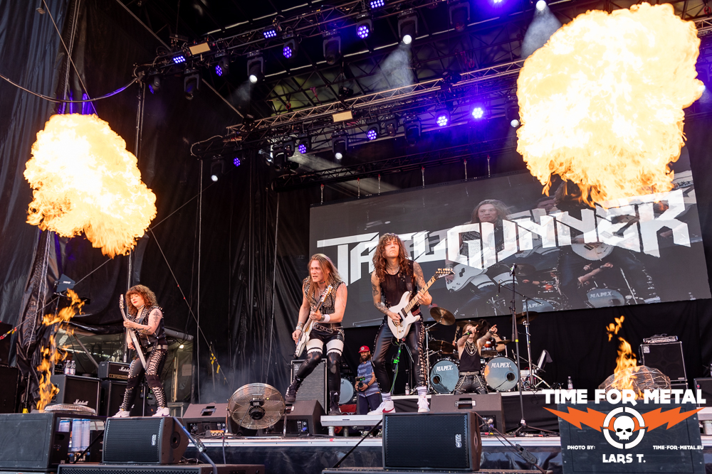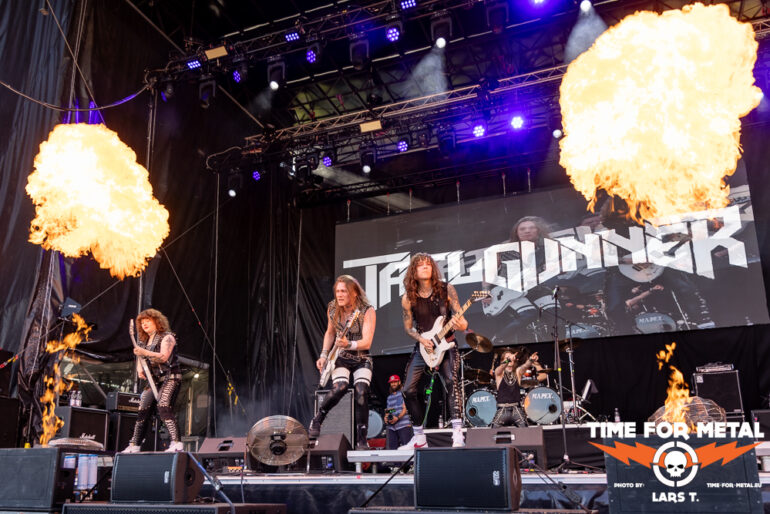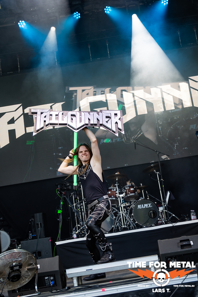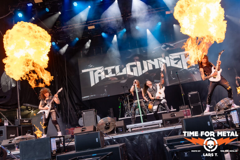 Zeit für Heavy Metal. Tailgunner sind Wiederholungstäter. Das Festival beeindruckt nicht nur die Menschen, die nach Rautheim pilgern. Auch die Künstlerschaft unterstützt den Ansatz der Inklusion und kümmert sich nach ihrem Gig um ihre Fans, die natürlich sowohl mit als auch ohne Einschränkungen am Merchstand zu finden sind. Vergangenes Jahr sprangen Tailgunner kurzfristig für Riot ein, die ein Problem mit ihrem Drummer hatten. Dieses Jahr sind Tailgunner eine feste Größe mit circa 45 Minuten Spielzeit, in der es auch zwei neue Nummern aus dem im Oktober zur Veröffentlichung anstehenden neuen Album als Kostprobe gibt. Dazu covert die Truppe Metallica und Hit The Light. Tailgunner sind der erwartete Act für die Headbanger und Old-School-Metaller. Im Vergleich zum Vorjahr hat die Truppe sowohl spielerisch als auch von der Eigenständigkeit nochmals zugelegt und dürfte zukünftig nicht nur in England größere Clubs und Konzerthallen füllen. Nach dem Gig steht die Band für Bilder etc. wie selbstverständlich am Merch zur Verfügung und verfolgt später den Co-Headliner Primal Fear.
