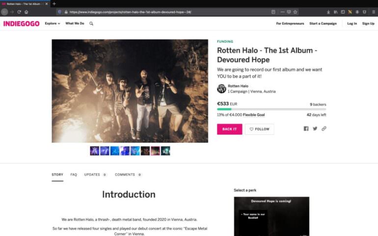 Die Band dazu: „Um aus dem Album das Allerbeste rauszuholen, haben wir eine Crowdfunding-Kampagne gestartet, bei der man sich viele coole Packages sichern kann! Die Packages enthalten, je nach Beitrag, das Album selber, Caps, T-Shirts, Sticker, bis hin zu gratis Eintritt für unsere Konzerte und sogar ein privates Livekonzert in Österreich!