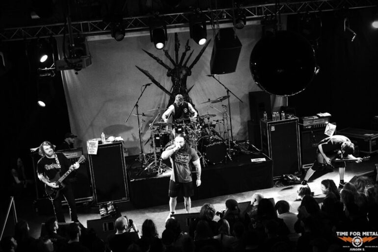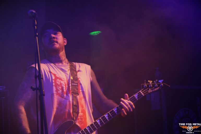 Frontmann Ryan Storey treffe ich bereits vor dem Gig am Merchstand. Sympathisch, entspannt, absolut bodenständig. Wir wechseln ein paar Worte, und ich lasse mir direkt ein Exemplar des aktuellen Albums zurücklegen. Ein kurzer, persönlicher Moment, bevor es wenig später auf der Bühne deutlich rauer wird. Musikalisch servieren Gates To Hell eine packende Mischung aus Death Metal und Metalcore. Massive Riffs treffen auf knallharte Breakdowns, wuchtige Midtempo-Passagen wechseln sich mit aggressiven Highspeed-Parts ab. Das Ergebnis ist gleichermaßen brachial wie mitreißend. Ryan Storey erweist sich dabei als echtes Energiebündel. Zwischen den Songs sucht er immer wieder das Gespräch mit dem Publikum, lockert die Stimmung mit kurzen Kommentaren auf, nur um im nächsten Moment wieder ins Mikro zu brüllen. Diese Mischung aus Nahbarkeit und ungebremster Aggression funktioniert hervorragend. Das Publikum ist inzwischen spürbar auf Betriebstemperatur. Wo zu Beginn des Abends noch vorsichtig genickt wurde, wird es jetzt deutlich „unruhiger“. Kaum setzen die ersten Breakdowns ein, öffnen sich die Reihen. Moshpits entstehen, drehen sich, verdichten sich wieder. Bodies fliegen, Schultern stoßen zusammen, und trotzdem wirkt alles kontrolliert-chaotisch, wie es sich für einen gelungenen Metalcore-Death-Mix gehört. Songs vom aktuellen Album zünden besonders stark. Die neuen Tracks klingen noch fokussierter, noch druckvoller und sorgen für ordentlich Bewegung im Saal. Von vorne bis hinten wirkt das Set kompakt und zielgerichtet, eine klare Ansage. Als Gates To Hell ihren letzten Ton setzen, ist der Kulturtempel endgültig wachgerüttelt. Die Fans sind aufgeheizt, der Boden klebt, die Luft ist schwer. Spätestens jetzt ist klar: Der Abend nimmt Fahrt auf und das Fundament für die folgenden Abrisskommandos ist gelegt.