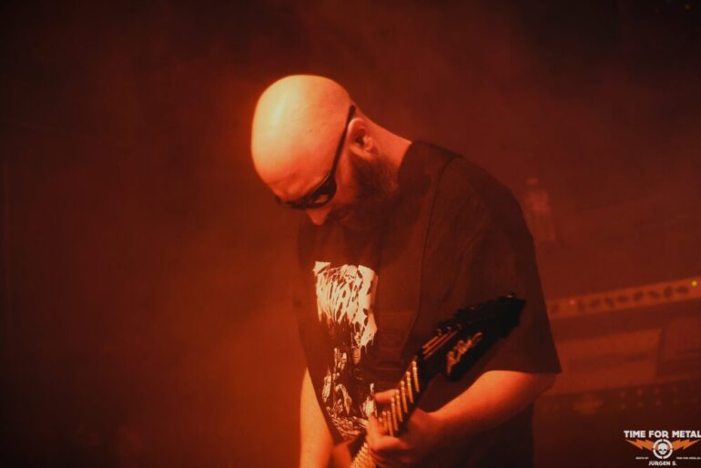 Dass Celestial Sanctuary längst mehr sind als ein Geheimtipp, haben sie bereits auf Tourneen und Festivalbühnen neben Szenegrößen wie Obituary, Cattle Decapitation, Gatecreeper, Frozen Soul und Undeath unter Beweis gestellt. Man merkt vom ersten Ton an: Hier steht eine Band auf der Bühne, die weiß, was sie tut. Ich selbst durfte die Truppe bereits beim Dortmund Deathfest im vergangenen Jahr erleben und schon dort hinterließen sie einen bleibenden Eindruck. Besonders Gitarrist Matt Adnett ist mir im Gedächtnis geblieben: dieser fast schon finstere, konzentrierte Blick, der wirkt, als würde er jeden im Raum einzeln mustern. Auch heute steht er wieder mit unbewegter Miene auf der Bühne, während seine Riffs messerscharf durch den Saal schneiden. Mit inzwischen zwei veröffentlichten Alben im Gepäck verzichten Celestial Sanctuary auf überflüssige Ansagen oder lange Pausen. Song reiht sich an Song, die Gitarren sägen, das Schlagzeug treibt unerbittlich nach vorne, der Gesang kommt tief und druckvoll. Der Sound ist klar, direkt und erstaunlich wuchtig für einen Opener-Slot.