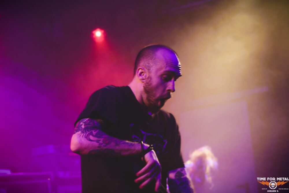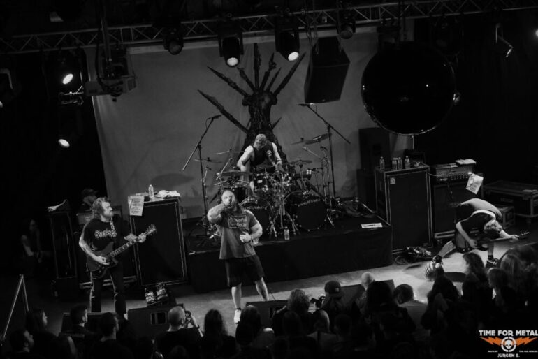 Nachdem Fulci ihr Set im Kulttempel unter tosendem Applaus beendet haben, kehrt nicht sofort die nächste Abrissbirne ein. Stattdessen folgt die übliche Verschnaufpause: Roadies wuseln über die Bühne, Boxen werden verschoben, Kabel neu verlegt, Drumteile ausgetauscht. Das Licht im Saal bleibt gedimmt, aus den Lautsprechern läuft Konservenmusik, eine kurze Phase zum Durchatmen, Bierholen und Wundenlecken nach dem intensiven Fulci-Set.