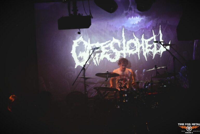 Nun wird der Kulttempel zur düsteren Kathedrale des Death Metal. Fulci betreten die Bühne – und ab der ersten Sekunde ist klar: Das hier ist kein gewöhnlicher Gig, das ist ein blutiges Ritual zwischen Konzert und Horrorfilm. Gates To Hell haben eben bereits ordentlich eingeheizt und sinnbildlich die Pforten zur Unterwelt geöffnet. Fulci gehen durch genau diese Höllentore, die zuvor weit aufgestoßen werden, und treiben alles noch eine Stufe weiter. Passender könnte es kaum sein, schließlich trägt schon ihr Debüt von 2016 den programmatischen Titel Opening The Gates Of Hell. Heute Abend wirken diese Tore sperrangelweit offen.