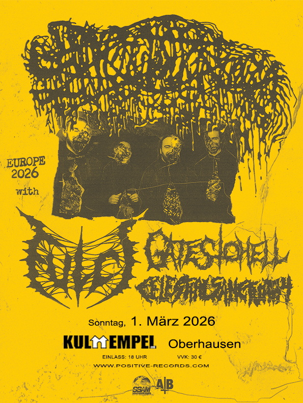 Heute, am 01.03.2026, verwandelt sich der Kulttempel in Oberhausen in ein Zentrum kompromissloser Härte, wenn vier der derzeit aufregendsten Death-Metal-Acts die Bühne übernehmen. Mit der rohen Wucht von Sanguisugabogg, den cineastisch-brutalen Horror-Vibes von Fulci, der finsteren Energie von Gates To Hell und dem wuchtigen UK-Death-Metal von Celestial Sanctuary erwartet das Publikum ein Abend voller maximaler Intensität. Ein Pflichttermin für uns von Time For Metal, aber auch für alle, die echte, ungefilterte Extreme-Music erleben wollen. Dementsprechend platzt die Location heute, an einem Sonntagabend, auch aus allen Nähten.