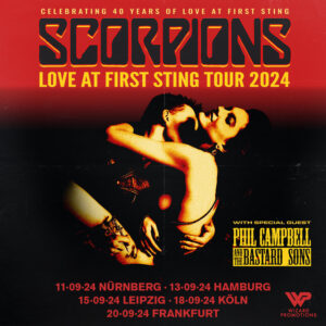 Im Gepäck haben die Scorpions auch noch eine ganz besondere Überraschung: „Wir werden unseren Fans in Deutschland unsere brandneue Show präsentieren, wir feiern 40 Jahre Love At First Sting“, verrät Klaus Meine. Das Album brachte der Rockband weltweit unfassbare Erfolge, eine Fülle ikonischer Songs. „Der Skorpion wird den Stachel für die deutschen Fans nochmal richtig ausfahren“, so Klaus Meine.