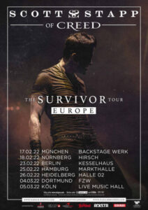 In Folge der andauernden Corona-Pandemie verschiebt Scott Stapp seine im März angekündigte Deutschlandtournee vom November 2020 ins Frühjahr 2022. Der ehemalige Sänger der amerikanischen Multi-Platin-Rocker Creed wird alle sieben Shows im Februar/März 2022 nachholen. Scott Stapp ist dann zu sehen in München am 17. Februar 2022 im Backstage Werk, in Nürnberg am 18. Februar 2022 im Hirsch, in Berlin am 23. Februar 2022 im Kesselhaus, in Hamburg am 25. Februar 2022 in der Markthalle, in Heidelberg am 26. Februar 2022 in der Halle 02, in Dortmund am 4. März 2022 im FZW und in Köln am 5. März 2022 in der Live Music Hall. Bereits gekaufte Tickets behalten ihre Gültigkeit, es sind weiterhin Karten erhältlich.