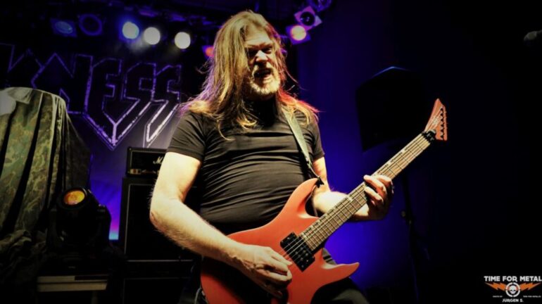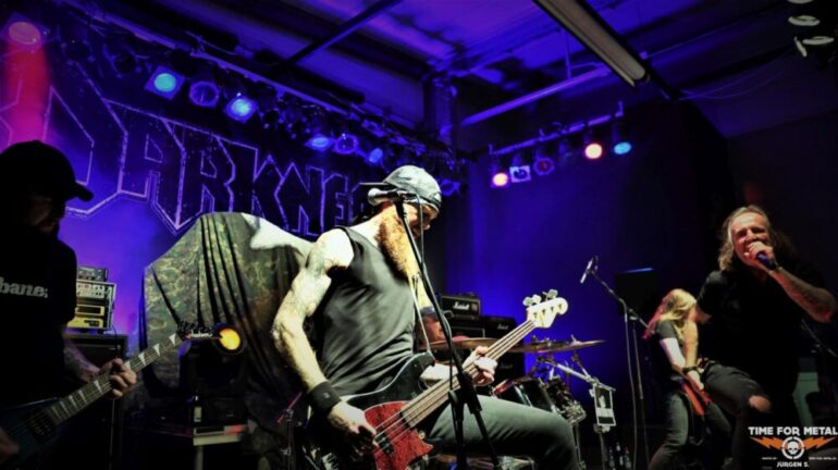Sänger Lee Weinberg versteht es, das Publikum so richtig mitzunehmen. Das dürfte allerdings auch nicht schwierig sein, denn nicht nur ich warte hier auf Darkness, sondern da sind noch einige Fans mehr, die auf die Thrash Truppe aus Essen warten. Wie man es bei den Kapellen aus dem Ruhrpott nicht anders kennt, wird richtig Gas gegeben und es rumpelt wunderbar. Sie spielen sich durch die fünf bisherigen Alben, die seit 1987 auf der Habenseite der Band stehen. Wären da nicht einige Splits gewesen, wären es wahrscheinlich ein paar mehr geworden. Die Titelsongs der letzten beiden Alben The Gasoline Station (2016) und First Class Violence (2018) stehen unter anderem auf der Setliste. Das ist nicht nur eine First Class Violence, sondern auch eine Iron Force, die sie hier auf die Bühne legen. Und klar, Tinkerbell Must Die, bevor die sympathischen Jungs hier in Andernach die Bühne verlassen. Wobei, die ist eigentlich ja schon am Anfang gestorben, aber egal, es hat hier mit Darkness richtig Spaß gemacht!