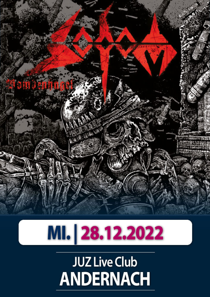 Weihnachtsausklang im JUZ in Andernach. Heute, am zweiten Tag nach den Festtagen, sind es Sodom, die uns einladen, den an Weihnachten angesammelten Speck mit fettem Thrash wieder abzutrainieren. Supportet werden sie von Darkness. Das Konzert sollte bereits vor einem Jahr hier an gleicher Stelle stattfinden, musste allerdings coronabedingt verschoben werden. Also schon ein fettes Programm für uns hier in Andernach, nachdem gestern noch Tankard supportet von Purify und Incertain (hier geht es zum Bericht) so richtig für Party gesorgt haben.