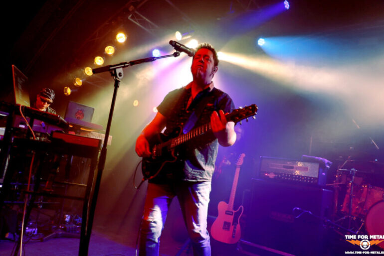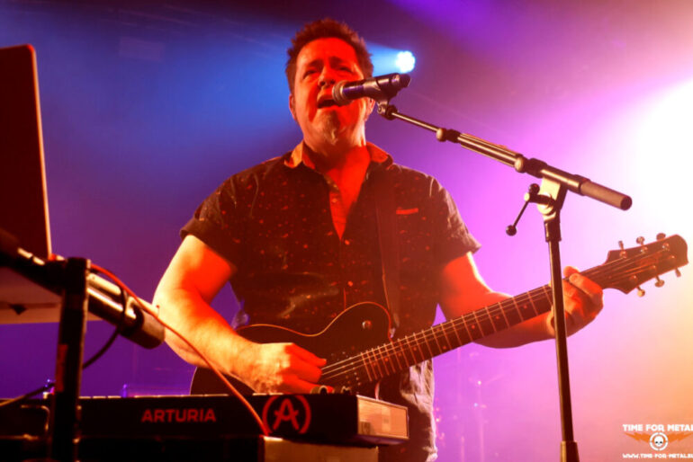 Um kurz nach 20 Uhr geht das Licht aus und der Auftakt ist At The End Of The Day vom Bestseller V aus dem Jahr 2000. Sänger und Gitarrist Ted Leonard bedient neben Mikrofon und Gitarre auch noch das zweite Keyboard. Schade ist, dass Bassist Dave Meros sich in eine hintere Ecke auf Höhe des neuen Drummers Nick Potters verzieht, sodass die Show ausschließlich von Ted Leonard, Alan Morse und Keyboarder Ryo Okumoto bestimmt wird. Das erste Stück hat auf Platte bereits eine Laufzeit von mehr als 16 Minuten. Live gibt es den einen oder anderen Schlenker mehr, sodass fast 20 Minuten für einen Track benötigt werden, was für Prog-Rock-Bands aber nichts Besonderes ist. Für Amateure an den Instrumenten ist es immer wieder angenehm, wenn ein Ausnahmekönner wie Alan Morse bei einem Einsatz zu früh dran ist, was Morse und Leonard mit einem Lächeln kommentieren. Auch Ausnahmekönner sind am Ende nur Menschen und machen auch mal einen Fehler.