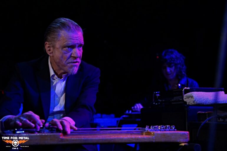 Nur die Hälfte der Songs stammt von Studioalben, vom aktuellen Release Birthing hat The Merge seinen Platz erhalten. Der Rest der Setlist besteht aus langen Kompositionen für den Livemoment und aus ihm heraus – ein Live-Album dieser Tour ist in Arbeit! Die Band erweitert die Stücke gemeinsam vor unseren Augen und lässt sie neu wachsen, immer unter den wachsamen Ohren Giras und dirigiert von dessen willensstarken Gesten. Mit seinen Noten vor sich und Klangvisionen im Kopf bestimmt er Einsätze, Dauer und Crescendi bis hin zu kleinen Tonnuancierungen. Ohne eine solch brillante und aufmerksame Band hinter sich, würde hier allerdings nichts gelingen: Alle haben den Orchesterchef im Blick, warten auf seine Zeichen und wissen exakt, was zu tun ist, wenn sich auch nur ein Finger hebt. So spielt Gira oft mit dem Rücken zum Publikum, doch in der Swans’schen Liveerfahrung steht ohnehin der Sound im Mittelpunkt. Dieser ist vielschichtig und fein, noisig, groß und lupenrein! Welten entstehen, verändern sich und uns mit ihnen.