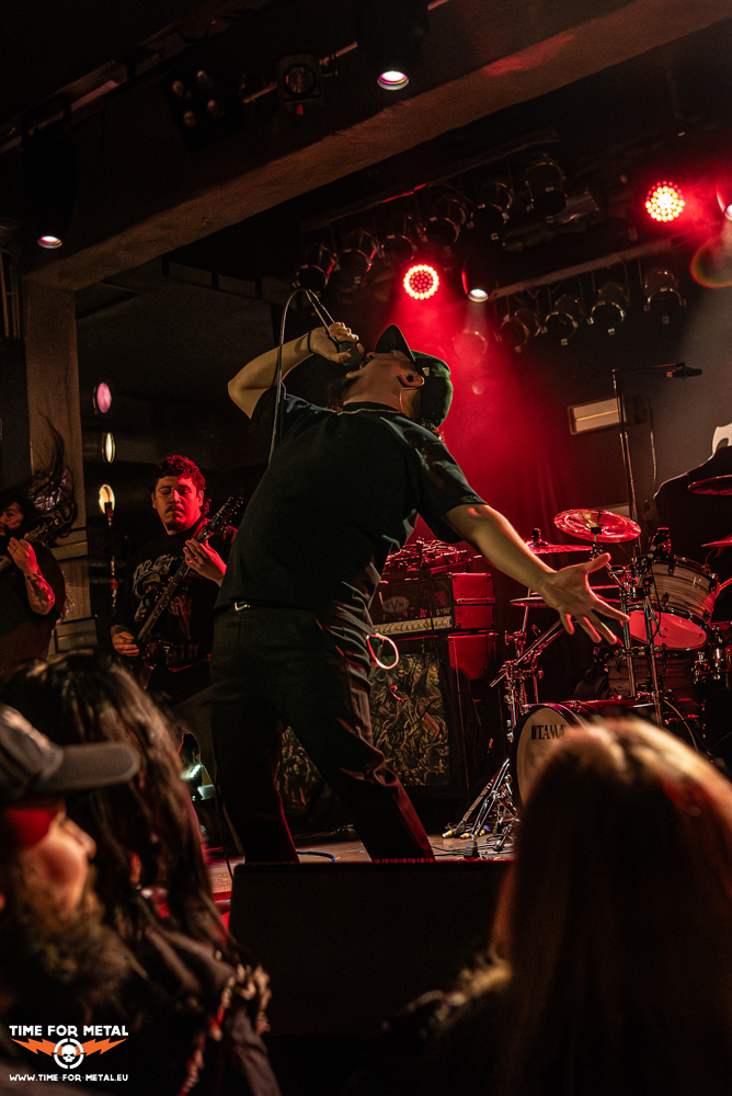 Auch Distant haben leichtes Spiel, die Bewegung im Publikum aufrechtzuerhalten. Bereits zum dritten Mal habe ich die Deathcore-Combo aus den Niederlanden vor der Kamera und auch dieses Mal enttäuschen Alan und seine Mitmusiker nicht! Das Substage hat sich mittlerweile etwas mehr gefüllt und auch der Moshpit wächst weiter. Obwohl dieses Mal bei weitem kein ausverkauftes Haus zu erwarten ist, überzeugt die Laune der Gäste. Ob es daran liegt, dass überall im Landkreis schon Prunksitzungen sind und einige diesem Wahnsinn einfach entfliehen wollen?!