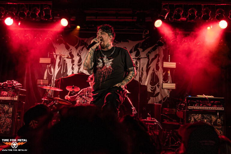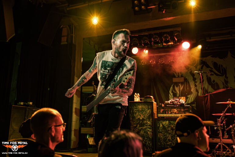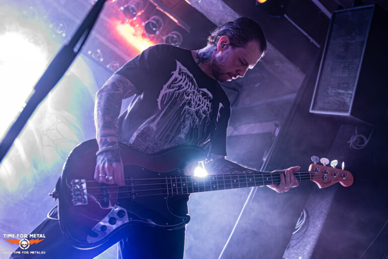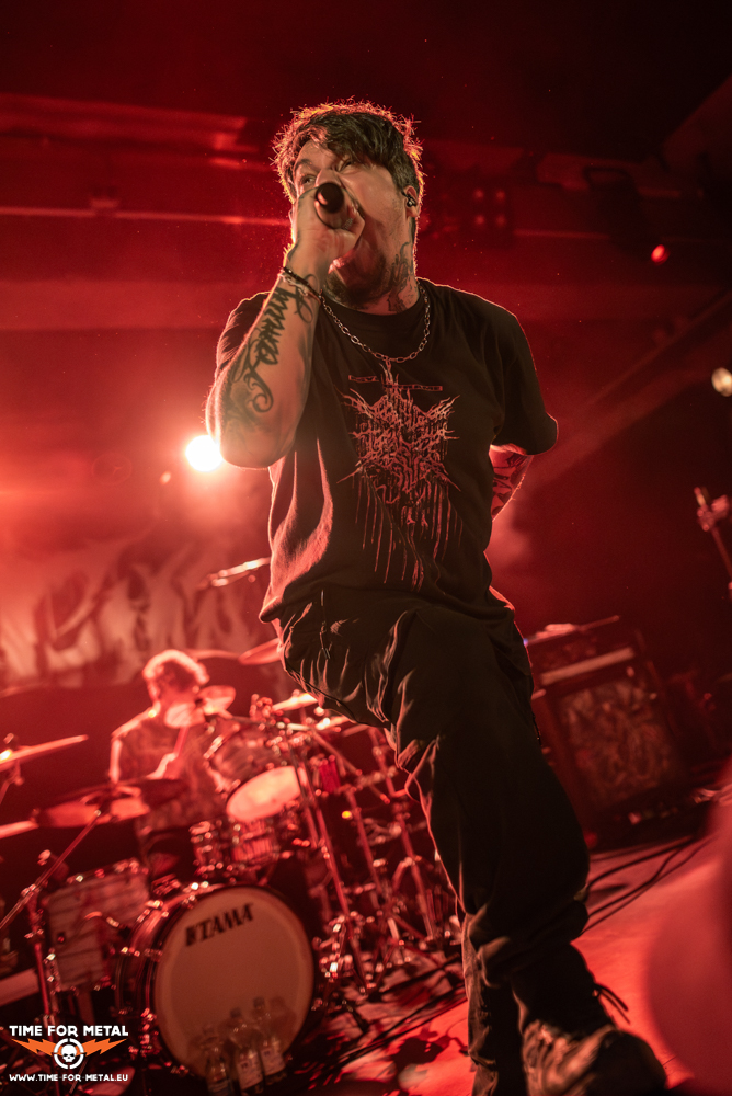 Als das Licht sich abdunkelt und I Was Made For Lovin’ You aus den Lautsprechern ertönt, wird einem schnell klar, dass wir nun zum großen Finale des Abends kommen. Sylosis betreten die Bühne und beginnen ihren Auftritt mit Erased, vom kommenden Album The New Flesh, nach dem auch die Tour benannt ist. Die Energie des Songs überträgt sich direkt auf die Fans, die ab der ersten Minute nicht mehr zu halten sind. I Sever und Worship Decay folgen. Dass Heavy Is The Crown zurück ins Set gefunden hat, freut mich sehr. Mit All Glory, No Valour präsentieren Josh und seine Bandkollegen ihren Fans einen bisher unveröffentlichten Song, der ebenso gut ankommt, wie das bereits veröffentlichte Material.