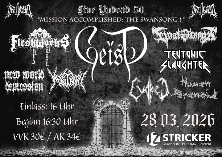 Eventname: EMA Fest 2026 Headliner: Gravestone Vorbands: Fleshworks und Tears Of Decay Datum: 19,.06.2026 Ort: Szenerie Leer, Ostersteg, 26789 Leer...
