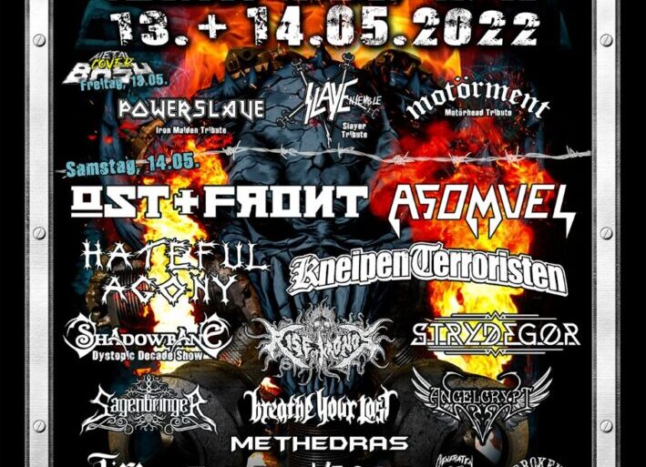 News·20. März 2022Metal Bash Open Air 2022: Cover Bash und Metal Bash Open Air finden am 13.05. und 14.05. stattMetal Bash – Cover Bash – Open Air 2022 13.05.2022 Neu Wulmstorf bei Hamburg, Schießsportanlage Line-Up: Powerslave (Iron Maiden Tribute),... Weiterlesen