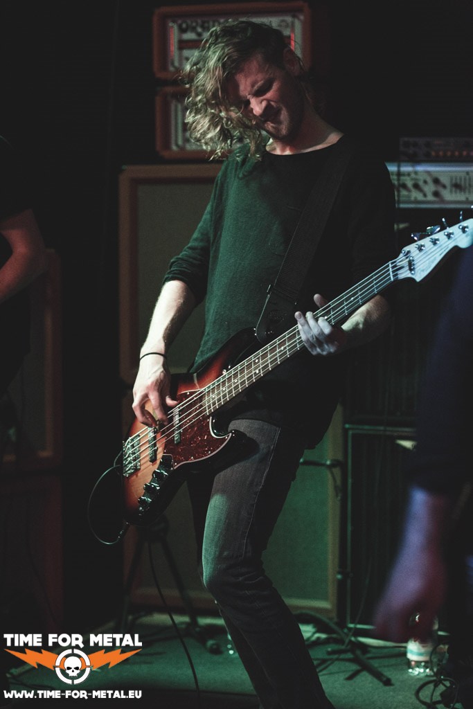 Außerwelt kommen, genau wie Tarasque, aus Münster und hatten dementsprechend eine wirklich sehr kurze Anreise. Nachdem ich sie ja schon beim Blodfeast in Krefeld live erleben durfte, stelle ich meine Kamera schon mal auf die passenden Einstellungen, denn auch hier haben Außerwelt natürlich ihre eigene Lichtshow dabei. Dann kommt auch schon die Bitte an den Mann am Lichtpult, alle Lichter zu löschen. Stroboskop gibt es heute nicht, nur sehr gedämpftes Rotlicht von am Boden liegenden Scheinwerfern. Auch sehr schön anzusehen, mir treibt es für die Fotos aber wieder mal den Schweiß auf die Stirn 😀 Nach dem Intro gibt es heute zunächst einen Song vom Album Our Lives Out Of Balance, der stand in Krefeld noch am Ende der Setliste. Aber dann natürlich wieder die Vollbedienung, alle vier Tracks vom letzten Album Transitions werden heute wieder wunderbar dargeboten. Nachdem es dann aber technische Probleme mit der eigenen Lichtshow gibt, werden auch die Scheinwerfer wieder eingeschaltet, was zwar dem Auftritt, nicht aber den Songs von Außerwelt doch ein wenig den Zauber nimmt. Nichtsdestotrotz natürlich wieder eine erinnerungswürdige Show, wie auch die gesamte heutige Veranstaltung.