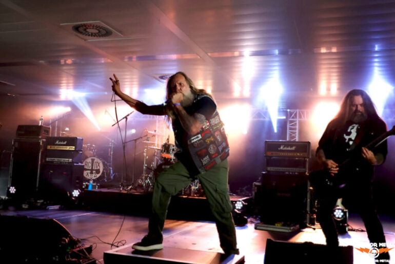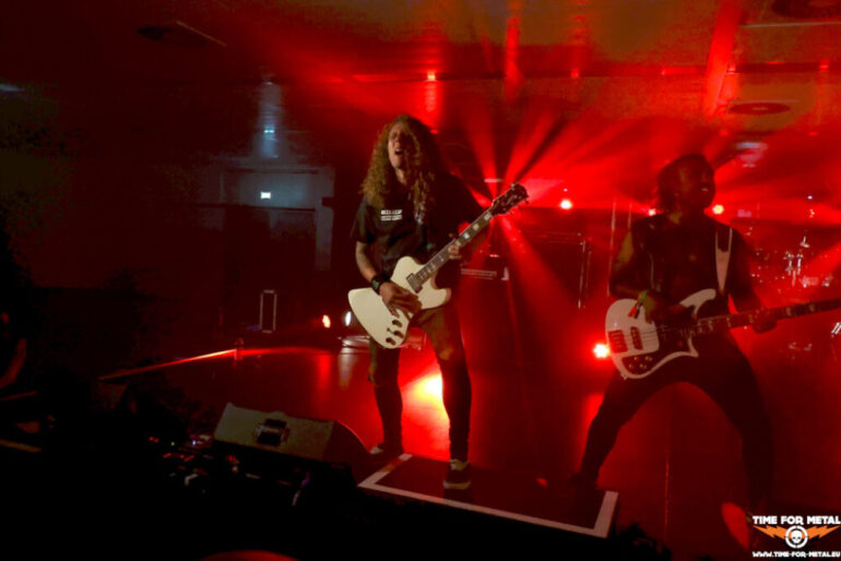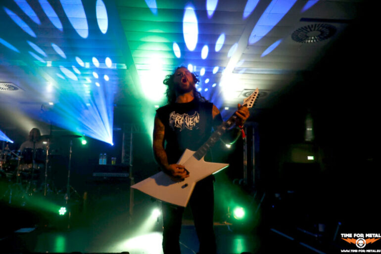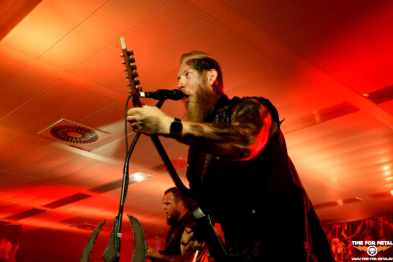 Der geringe Zuschauerandrang hält DeTraktor nicht davon ab, ein ordentliches Brett aufs Parkett zu legen. Die Bühne, der Sound, Licht – alles top. Nur die Fans fehlen. Nur circa 30 Menschen vor der Bühne, wo circa 1500 Menschen Platz finden würden, ist ein seltsames Gefühl. Es gibt Traktor Metal, wie die Herren ihren Style selbst beschreiben. Die Basis ist Thrash, der von den Saiten mit einem ordentlichen Groove versehen wird. Sänger Boris Pavlov ist in der Hansestadt auch von dem Projekt Sacrifire bekannt, bei dem er mit dem Warpath-Fronter Dirk Weiß musiziert. Circa 45 Minuten gibt es Musik von den beiden Platten Grinder und Full Body Stomp, dann ist Zeit für den ersten Umbau. Pavlov verweist zum Ende des Gigs, dass DeTraktor die Band ist, die kein Merch dabeihat. Schade eigentlich.