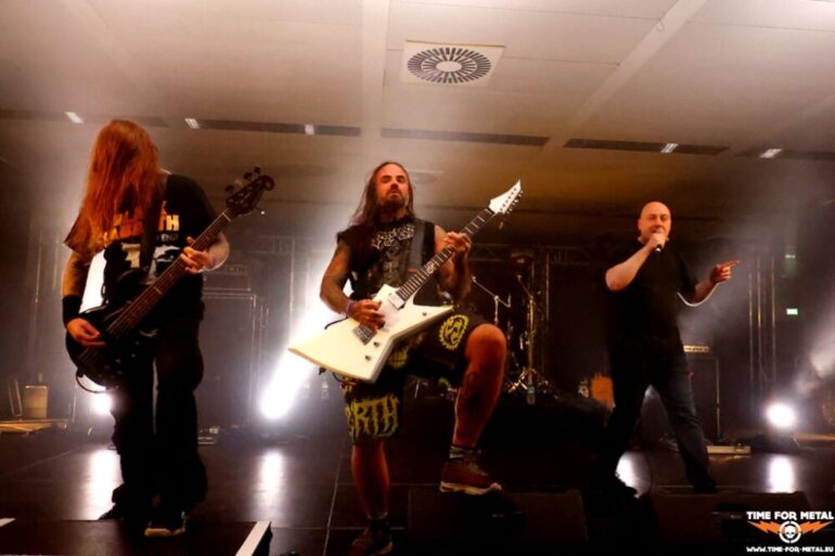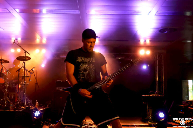 Noch krasser wird es mit Endseeker. Die Truppe ist das Death-Metal-Aushängeschild der Hansestadt und kommt mit einem starken schwedischen Akzent daher. Oft wird das Quintett mit Entombed oder Dismember verglichen. Die beiden Gitarristen Jury und Ben sind bereits am Vortag hier. Ben tätowiert selbst und hat ein entsprechendes Interesse an dem primären fachlichen Topic. Jury lässt sich einen Tag nach dem Gig noch neu bemalen. Der Gig selbst dürfte in die Endseeker-Geschichte eingehen, als der Auftritt 2024 vor der geringsten Kulisse. Die Crowd ist mehr oder weniger identisch zu Rise Of Kronos. Am Set und der Performance gibt es nichts zu meckern. Endseeker hämmern 45 Minuten sauber ihre Nummern in die Gehörgänge der Fans, darunter aus der Anfangszeit Into The Fire und Possessed By The Flame. Das aktuelle Werk Global Worming steht im Mittelpunkt und steuert vier Tracks zum Set bei. Geiler Gig, wie immer von Endseeker, der mehr Zuschauer verdient hätte. Die Herren verabschieden sich in eine Konzertpause für die nächsten Monate und werden vor Sommer 2025 nicht auf einer Bühne zu sehen sein.