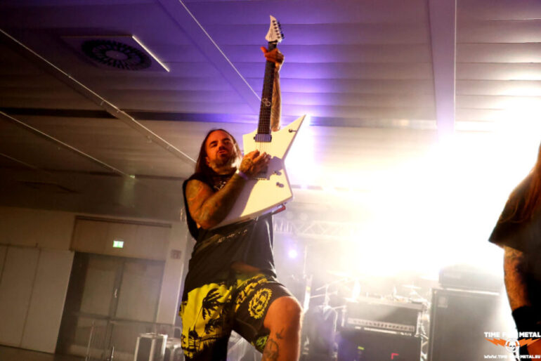 Die dritte Band des Abends kommt aus Dänemark. Bæst spielten vor 14 Tagen auf dem Jailbreak in Horsens vor circa 2.000 Menschen. Im Herbst 2023 waren die Herren als Opener für Krisiun im Headcrash auf dem Kiez. In Dänemark ist die Truppe durch eine TV-Show mächtig angesagt. In Deutschland arbeiten die Herren um Sänger Simon Olsen an der Erweiterung der Fanbase. Das Publikum vor der Bühne ist nahezu unverändert. Das dritte Mal Death Metal, das passt gut zusammen und hätte in einer anderen Konstellation locker 300 Fans gezogen. So ergeht es der Band aus Aarhus wie den Hamburger Death-Metallern: in einer riesengroßen Halle und nur ein paar Fans vor der Bühne. Musikalisch gibt es nichts zu meckern und die Truppe räumt mächtig ab. Sound, Licht und Bandperformance – alles wunderbar – nur keine Konzertatmosphäre. Mit King Of The Sun präsentieren die Herren etwas vom kommenden Release. Ansonsten geht es vor allem um Necro Sapiens, wovon drei der insgesamt neun Tracks stammen. Danke an Bæst für die professionelle und sympathische Vorstellung. Alle Musiker sind am Merch oder in der Venue unterwegs.