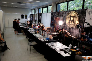 Problem zwei: niemand weiß Genaues. Es spielen am Freitag vier Bands. Ab 17 Uhr soll es losgehen. Wer, wann, wie und wie lange spielt, ist ein Fragezeichen. Dazu ist die Preispolitik für die Musikfans nachteilhaft. Wer die Konzerte mitnehmen möchte, der muss sich auch den Zugang für die Tattoomesse kaufen. Knapp 60 € für vier Bands ist ein stolzer Preis. Das führt dazu, dass bei der ersten Band, dem Lokalmatador Detraktor, die Besucherschaft sehr überschaubar ist. Viel mehr als 30 Menschen tummeln sich nicht vor der Bühne. Selbst beim Headliner Rotting Christ sind es kaum mehr als 150 Menschen, wobei es schwer zu sagen ist, wer vor der Bühne Aussteller bei der Tattoomesse ist und wer nur zur Musik kommt.