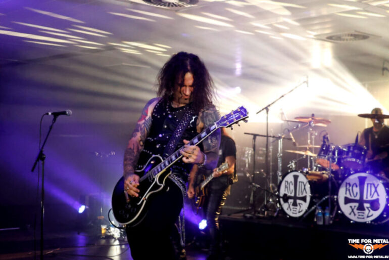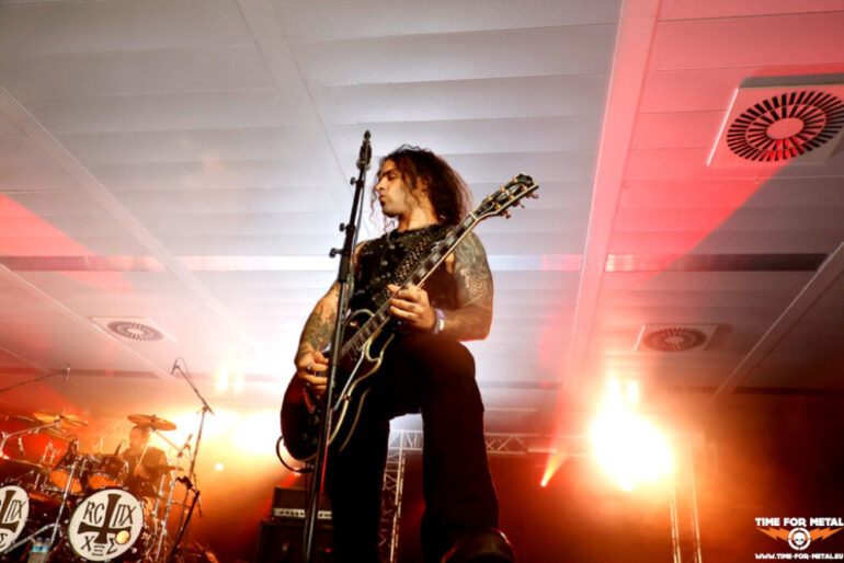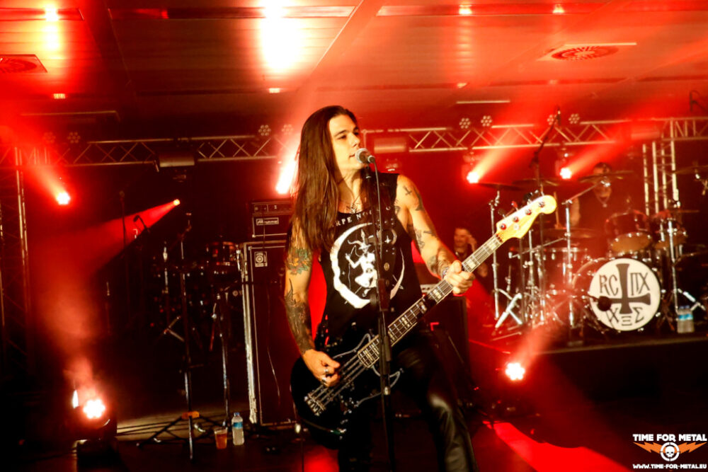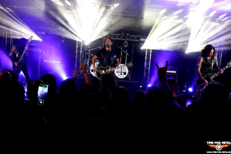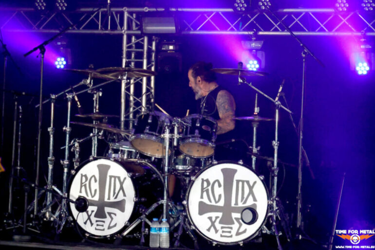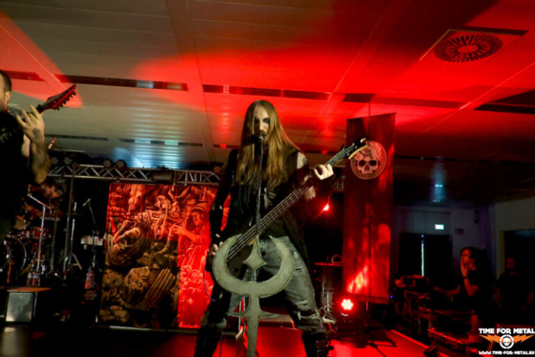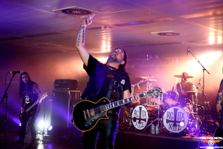 Voll ist die Halle jetzt auch nicht, aber vor der Bühne stehen circa 150 Menschen und headbangen zu den Takten von Rotting Christ. Offiziell sind nur die beiden Tolis-Brüder an den Drums und Vocals und Gitarre Bandmitglieder. Dazu gesellen sich Kostas Spades am Bass und Kostis Foukarakis für die zweite Gitarre und Backgroundgesang. Die aktuelle Scheibe Pro Xristou ist von den schwarzmetallischen Anfangstagen der Tolis-Brüder weit entfernt und im Gothic Metal beheimatet. Heute steht das Album von 2013 mit dem Namen Kata Ton Daimona Eaytoy im Vordergrund. Gleich fünf Nummern, darunter die bekannten Grandis Spiritus Diavolos und 666 gleich zum Auftakt, lässt das Quartett auf die Hörerschaft einprasseln. Es wird gebangt und selbst ein Circlepit entsteht im Laufe des circa 70-minütigen Auftritts. Vom aktuellen Werk gibt es nur Like Father, Like Son, der Live durchaus seine Wirkung erzielt. Insgesamt ein starker Gig der Herren, leider vor viel zu wenig Menschen. Rotting Christ im Kulturpalst Billstedt wäre mit 400 oder 500 Menschen über die Bühne gegangen. Gegen kurz vor 23 Uhr endet die Livemusik und die Halle leert sich entsprechend schnell.