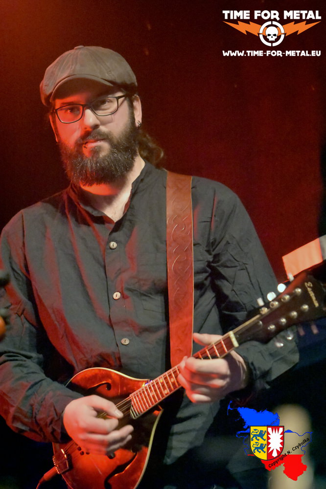 Ein wenig leid kann einem Lukas Schnitzler tun. Mit seinem Dudelsack und Flöten sitzt er in der Ecke der Bühne in der dritten Reihe und hat nur wenig Einsatzzeiten. Trotzdem bringt sein Einsatz immer wieder Vielfalt in den Klangteppich. Miriam Leutzinger an der Geige hat etwas gewonnen. Jetzt muss sie sich nicht mehr allein gegen den Männertrupp durchsetzen. Ihr Spiel ist jetzt flüssig und kontinuierlich in das Set eingebunden.