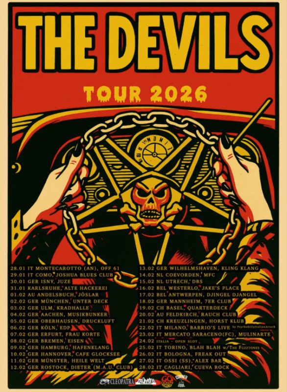 Die Band The Devils, die sich mit explosiven Shows und einem wilden Rocksound einen Namen gemacht hat, kündigt ihre Europatournee 2026 an. Das italienische Rockduo startet die Tour am 28. Januar in Montecarotto, Italien, bevor es seine energiegeladenen Live-Auftritte durch Deutschland, Österreich, die Niederlande, Belgien, die Schweiz und Italien führt.