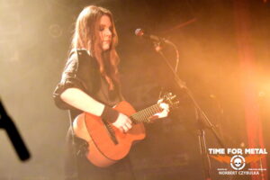 Den Auftakt macht um 20:25 Uhr eine Solokünstlerin, die offensichtlich die/den eine/n überrascht. Sowohl vom Setup als auch vom Programm, denn neben einer Gitarre ist auf der Bühne nichts zu sehen. Mia Karlsson, Gitarristin bei Crucified Barbara und regelmäßige Tour-Bassistin der Gems, bekommt die Chance, ihr erstes Album Coming Home zu präsentieren. Und beweist, welch musikalische Klasse und wunderschöne Stimme sie hat. In einer emotionalen Ansprache erzählt sie davon, dass sie nach einem Burnout glaubte, nie wieder Musik zu machen. Wie gut, dass sie die Kraft gefunden hat, weiterzumachen. Finden auch die Gems-Kolleginnen, die vom Bühnenrand applaudieren. Das Fünf-Song-Set hat Gefühl und Tiefe, besonders die neue Single Raindrops wird bejubelt.