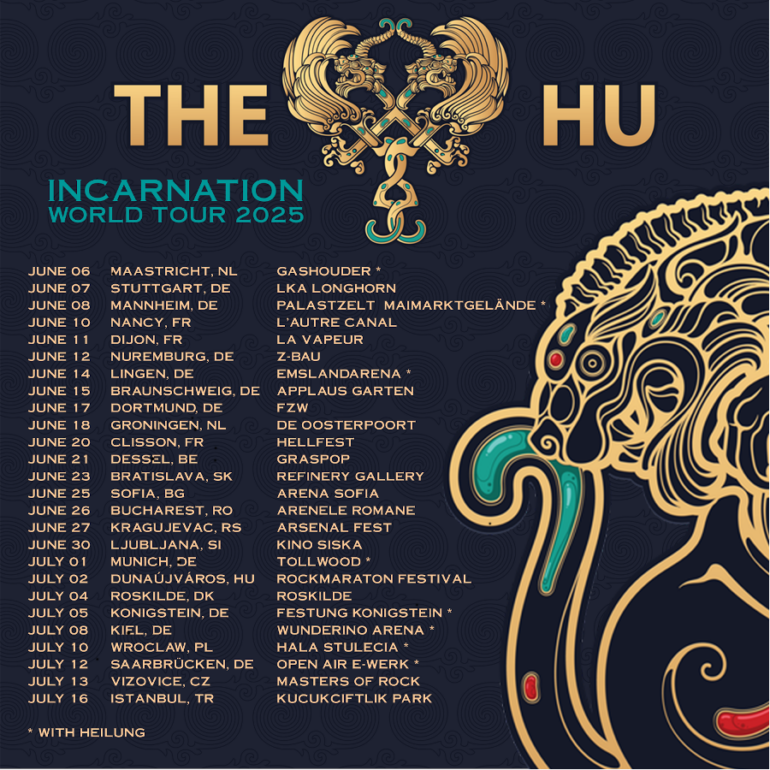 Auch im Jahr 2025 werden The Hu das Publikum auf der ganzen Welt begeistern. gestern gaben sie die Termine für den europäischen Teil ihrer Incarnation Headline-Welttournee bekannt. Die Tour beginnt Anfang Juni und fällt mit einer Reihe von Shows zusammen, bei denen die mongolische Rock-Sensation die Nordic-Folk Band Heilung auf ihrer Abschiedstour als Support begleiten wird. Insgesamt werden The Hu zehn Shows in Deutschland spielen und auf einigen der größten europäischen Heavy-Music-Festivals live zu sehen sein, darunter das Hellfest und das Graspop Metal Meeting. Die vollständigen Tourdaten sind unten aufgeführt. Tickets sind ab diesem Freitag, den 13. Dezember HIER erhältlich.