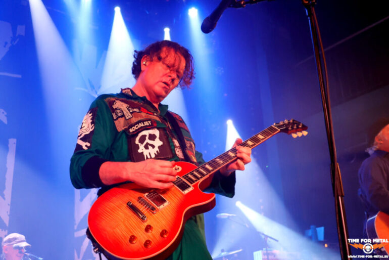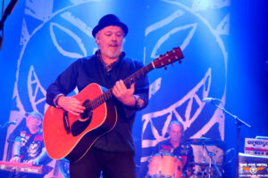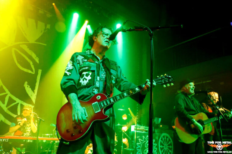 Der Auftakt ist zunächst klar. Gute 50 Minuten Zeitgeist. Die Abfolge wird leicht angepasst. Der Überflieger Hope St. rückt hinter The Fear. Anschließend geht es Step by Step durch das Album mit der Feststellung, dass eine komplette Live-Interpretation einer LP auch immer die eine oder andere Länge in sich birgt und nicht ganz so mitreißt. Das ist als Platte angenehm, bei der Live-Performance geht die Stimmung nach Hope St. mit dem Nachfolger Exodus etwas runter. Es ist eher Zuhören und Genießen angesagt als Headbangen und Pogen. Was der Sänger der Vorband zu viel hatte, hat Mark Chadwick eher zu wenig. Fast wortlos, ohne große Interaktion, zockt das Sextett die Platte runter. Technisch ist das hervorragend gemacht. Die Integration der verschiedenen Folk-Instrumente ist durchaus eine Herausforderung. Im Gegensatz zum eher schrabbligen Spiel der Vorband werden auch die E-Instrumente auf einem ganz anderen Niveau ins Spiel gebracht. Mit Punk hat die Musik von The Levellers live nichts zu tun.