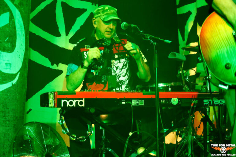 Bereits der Bühnenaufbau ist unorthodox. Das Drumset steht hinten rechts, auf der linken Seite das Keyboard. Vorne agieren Geige, Bass und die beiden Sänger und Gitarristen. Wobei Gitarristen nur zum Teil stimmt. Bei The Levellers kommen Sachen wie Mandoline, Gitalele, im Laufe der Show sogar ein Didgeridoo, zum Einsatz. Folk trifft auf Punk und Rock, auch progressive Parts sind durchaus dabei. So richtig in eine Schublade passt die Truppe nicht. Aber genau das macht die Sache spannend.