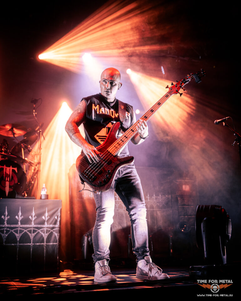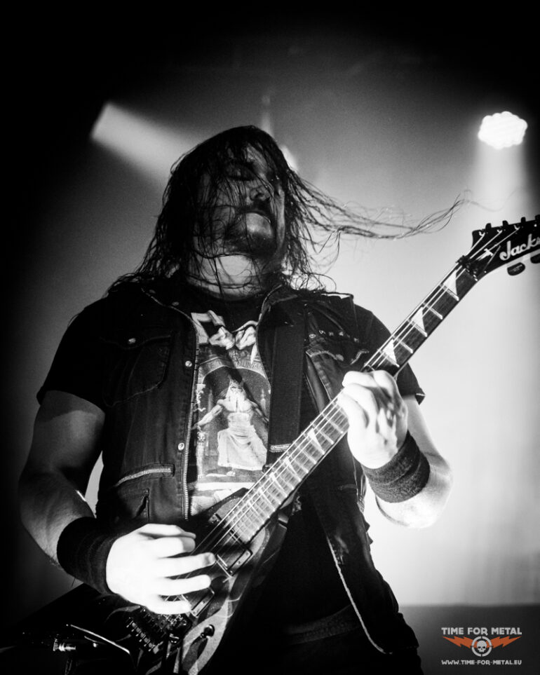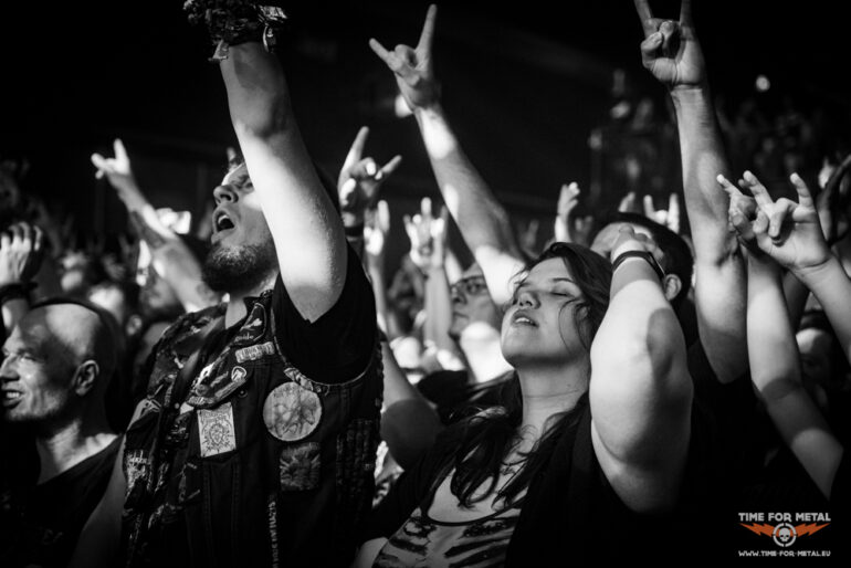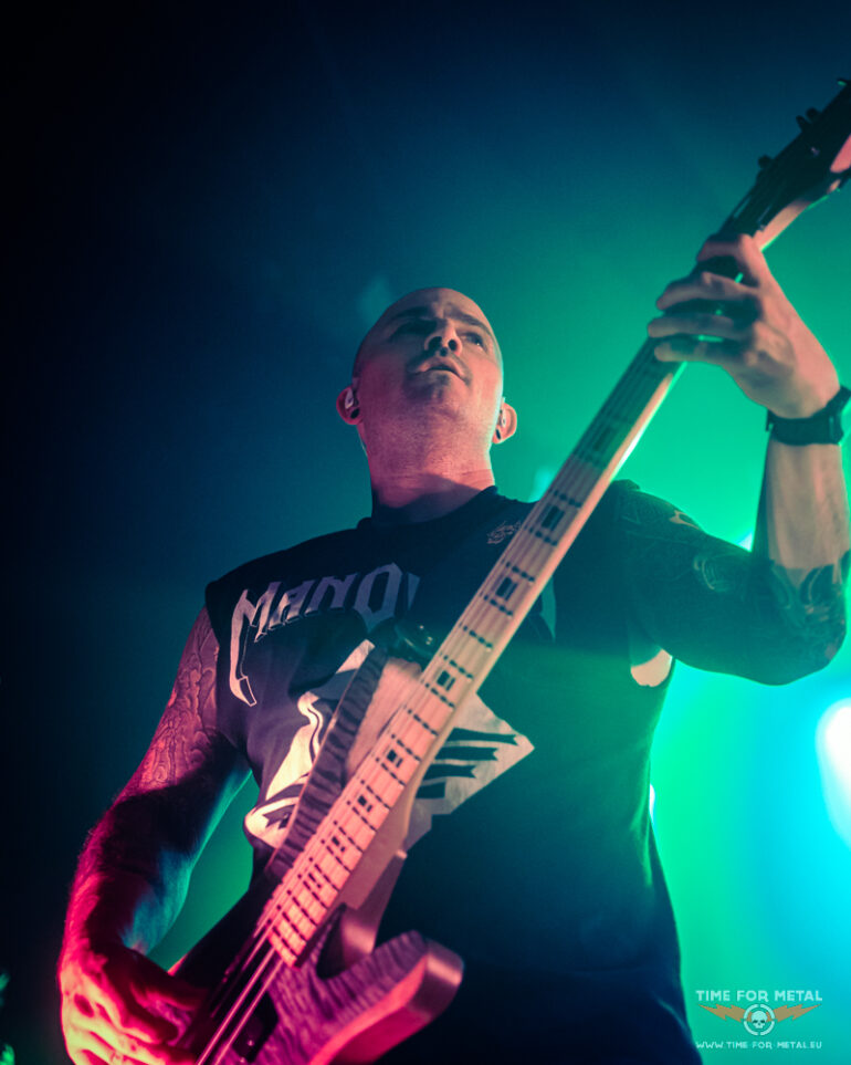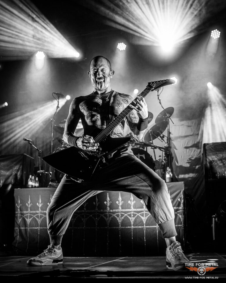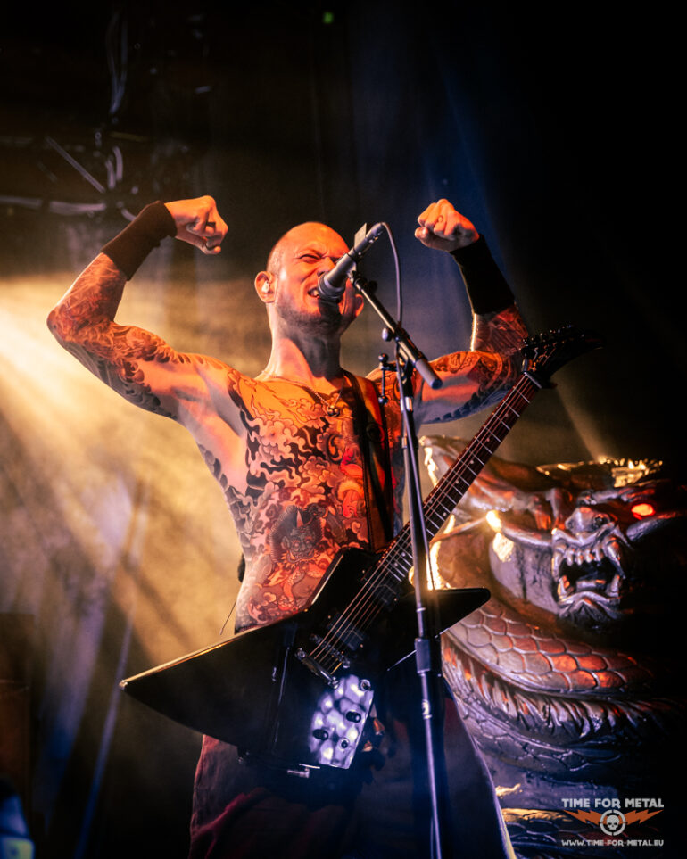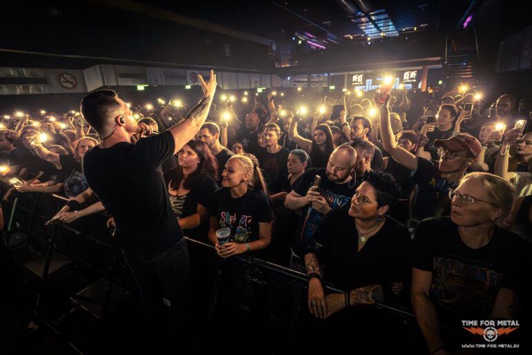 In der Menge sind jetzt gefühlt 50 Grad und ich ziehe mich nach oben auf den Innenbalkon zurück, um den Rest der Show zu genießen. Nach der Metallica-Coverversion von Master Of Puppets geht es Schlag auf Schlag weiter. A Gunshot To The Head Of Trepidation und Strife treiben die Energie noch einmal hoch. Beim brachialen Bury Me With My Screams kocht die Halle endgültig über – hier bleibt kein Nacken unverschont. Als die ersten Klänge von In Waves erklingen, gibt es kein Halten mehr. „IN WAAAAAVES!“ brüllen Band und Fans im Chor, und das in einer Lautstärke, die ich echt selten bisher erlebt habe, echt ein weiteres absolutes Highlight im heutigen Set. Der Schlussteil des Programms liest sich wie ein Best-of der letzten Jahre: The Heart From Your Hate für die melodische Ader, Down From The Sky als epischer Brecher und zum Finale The Sin And The Sentence – ein energiegeladener Song, der den perfekten Abschluss des Abends bildet.