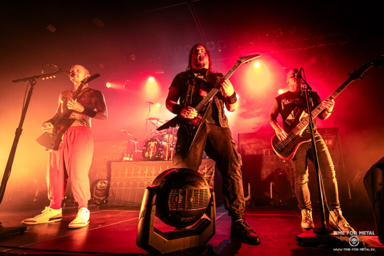 21:00 Uhr, das Licht erlischt, Nebel wabert über die Bühne, und die ersten Töne von Rain brechen über uns herein. Ohne große Ansage knallt uns die Band diesen ersten Song um die Ohren – hart, schnell, kompromisslos. Sofort wird klar: Heute wird keine halbe Kraft gefahren. Direkt im Anschluss folgt Pull Harder On The Strings Of Your Martyr, und spätestens hier ist die Menge komplett entfesselt. Der Pit rotiert, Crowdsurfer fliegen über die Köpfe hinweg und es wird mitgesungen, was die Kehlen hergeben. Mit Like Light To The Flies und dem neueren Catastrophist zeigen Trivium gleich zu Beginn ihre Bandbreite – vom aggressiven Melodic-Thrash und Metalcore der Frühphase bis zu den modernen, hymnischen Refrains der letzten Alben. Die Mischung funktioniert perfekt und die Band zeigt, dass sie so einige unterschiedliche Metal-Richtungen über die Jahre perfekt in ihr Programm integriert hat. Ein besonderer Moment folgt mit Until The World Goes Cold – ein Song, der bei mir gerade echt für Gänsehaut sorgt, wenn die ca. 1000 Gäste am heutigen Abend gemeinsam die Refrainzeilen mitsingen. Die Stimmung kippt danach sofort wieder in Richtung Abriss, als Throes Of Perdition die Halle erbeben lässt und sich direkt wieder ein Circlepit bildet.