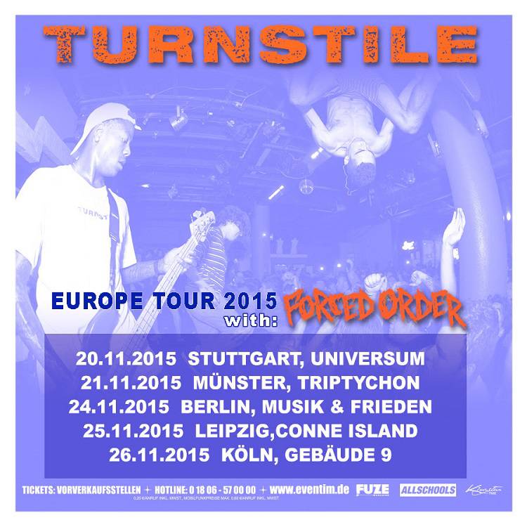 Kritiker zeigen sich von der Kombination aus 90er New York Hardcore und aktuellem Heavy-Rock weltweit bewegt und sprechen TURNSTILE nicht nur durch symbolische Vergleiche mit „Rage Against The Machine“ ihr besonderes Alleinstellungsmerkmal zu. In Deutschland kommt die Ausnahmeband für fünf Deutschland Konzerte im November nach Köln, Berlin, Leipzig, Stuttgart und Münster.