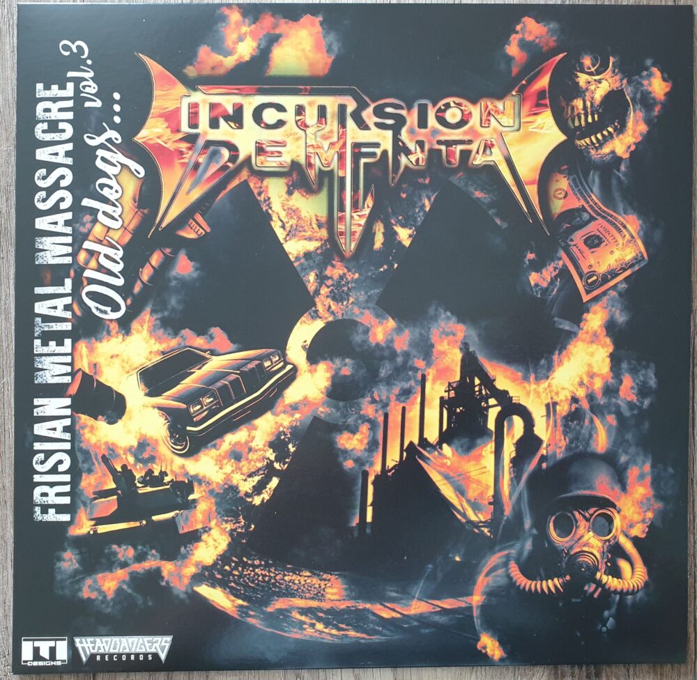 In Anlehnung an diese Reihe brachten die Labels Big Bad Wolf aus Leeuwarden und Headbangers Records aus Tilburg auch Sampler heraus, die den Namen Frisian Metal Massacre tragen. Bereits 2011 und 2012 kamen Teil 1 und 2 heraus. Nach einiger Pause kam nun am 24.06.2023 Teil 3 auf den Markt. Dieses Album ist ein auf 500 Stück limitiertes Split-Album. Nach dem Motto „Old Dogs and new tricks“ bekommt man hier deftigen Thrash-Metal und eine kräftige Mischung aus Heavy- und Blackmetal auf die Ohren. Die Hülle ist so gestaltet, dass sie beiden auf dem Sampler zu hörenden Bands gerecht wird. Jede Seite des Covers könnte als Frontcover durchgehen. Die Innenhülle ist unbedruckt, aber es liegt ein Infoblatt über die Bands bei.