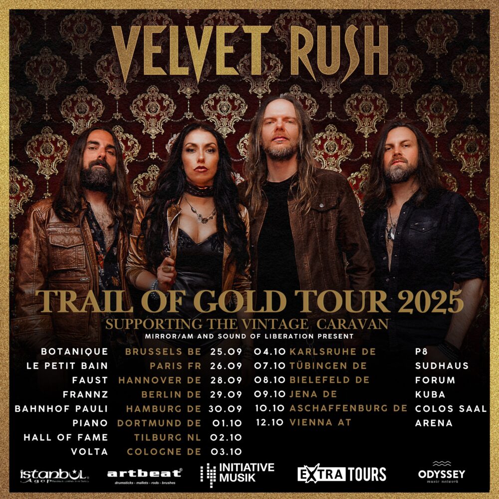 Gleichzeitig liefert der Song einen ersten Vorgeschmack auf das Album, das nicht weniger als ein Manifest ist: Trail Of Gold – elf kompromisslose Songs voller purer Rock’n’Roll-Energie, produziert in den legendären Chameleon Studios von Erfolgsproduzent Eike Freese (u. a. Deep Purple, Slash, Simple Minds). Velvet Rush wirbeln den Staub der 70er auf, schlagen aber ein neues Kapitel auf – modern, druckvoll, authentisch.