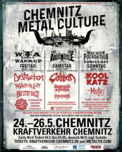 Anlässlich der Ernennung Chemnitz’ zur Kulturhauptstadt Europas 2025 sollte bereits im Dezember der Spirit des W:O:A Einzug in Sachsen halten. Da die Veranstaltung aufgrund von Krankheit verschoben werden musste, dürfen sich Metalheads im Rahmen der Chemnitz Metal Culture, präsentiert von der Wacken Foundation und dem Kraftverkehr Chemnitz, nun auf ganze drei Tage voller Riffs freuen.